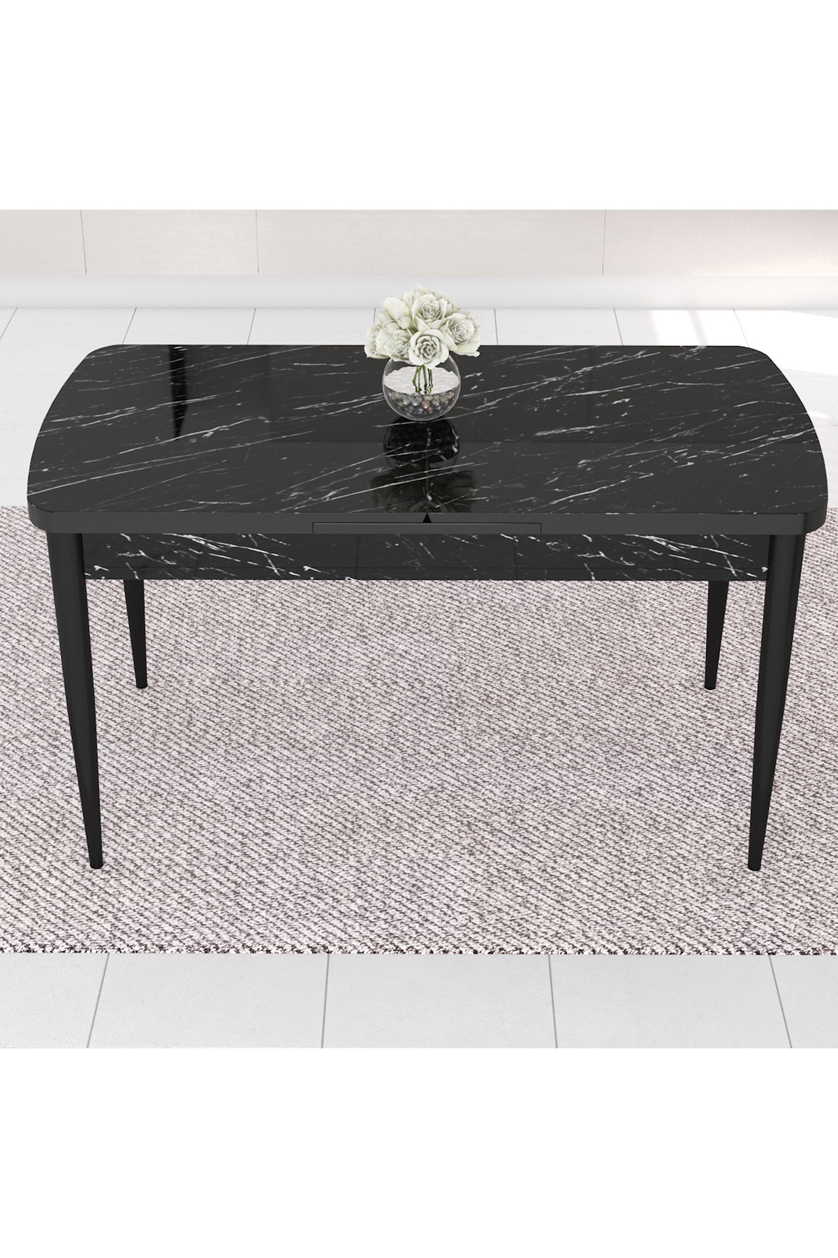 Taç Serisi Açılabilir Mutfak Masası Takımı 80x132 Siyah Mermer Desen Masa 6 Mürdüm Sandalye Taç Serisi Açılabilir Mutfak Masası Takımı 80x132 Siyah Mermer Desen Masa 6 Mürdüm Sandalye TAÇ01SYHMR06GMSS تک سایز