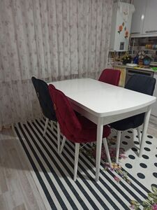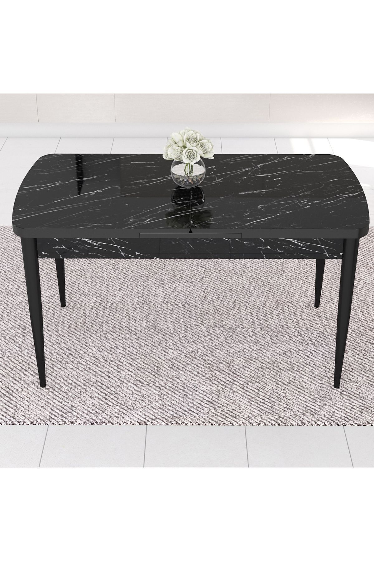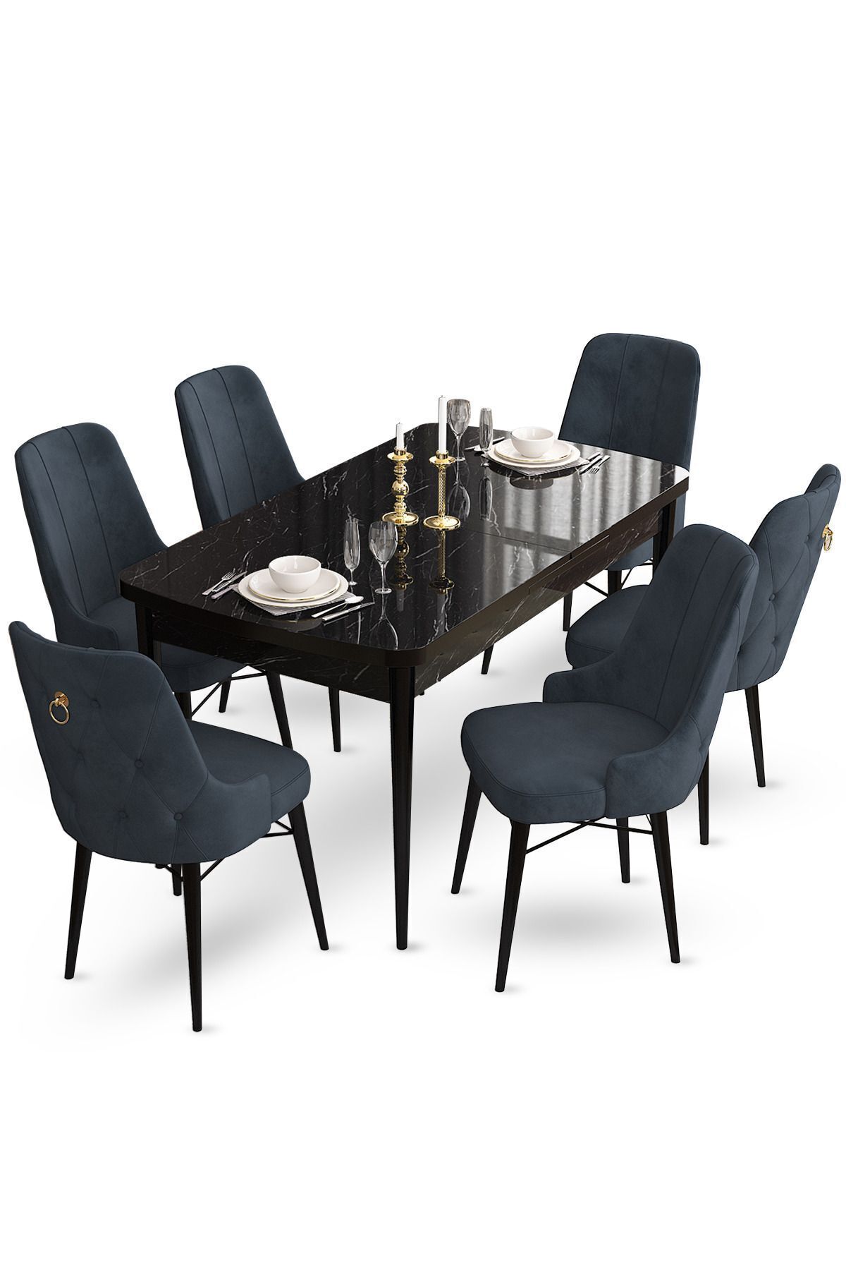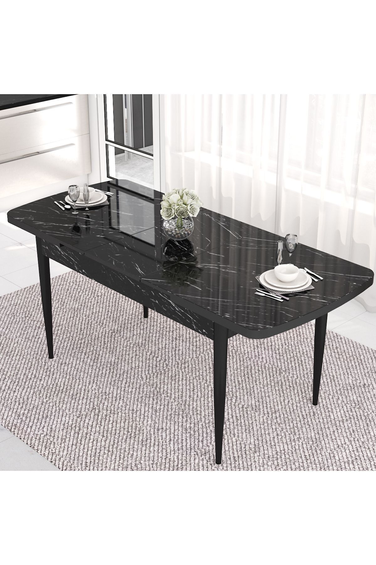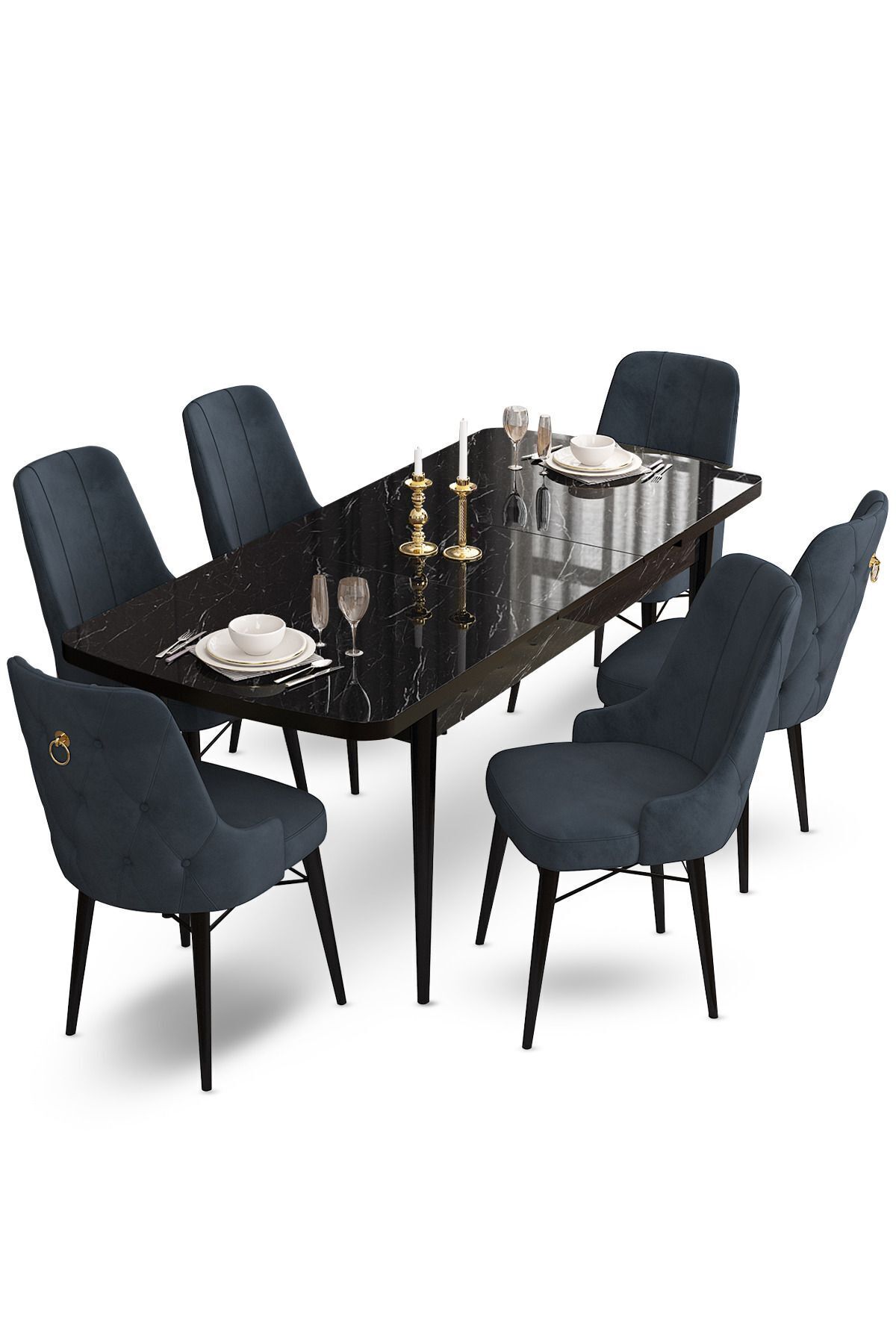 Taç Serisi Açılabilir Mutfak Masası Takımı 80x132 Siyah Mermer Desen Masa 6 Antrasit Sandalye Taç Serisi Açılabilir Mutfak Masası Takımı 80x132 Siyah Mermer Desen Masa 6 Antrasit Sandalye TAÇ01SYHMR06GMSS تک سایز