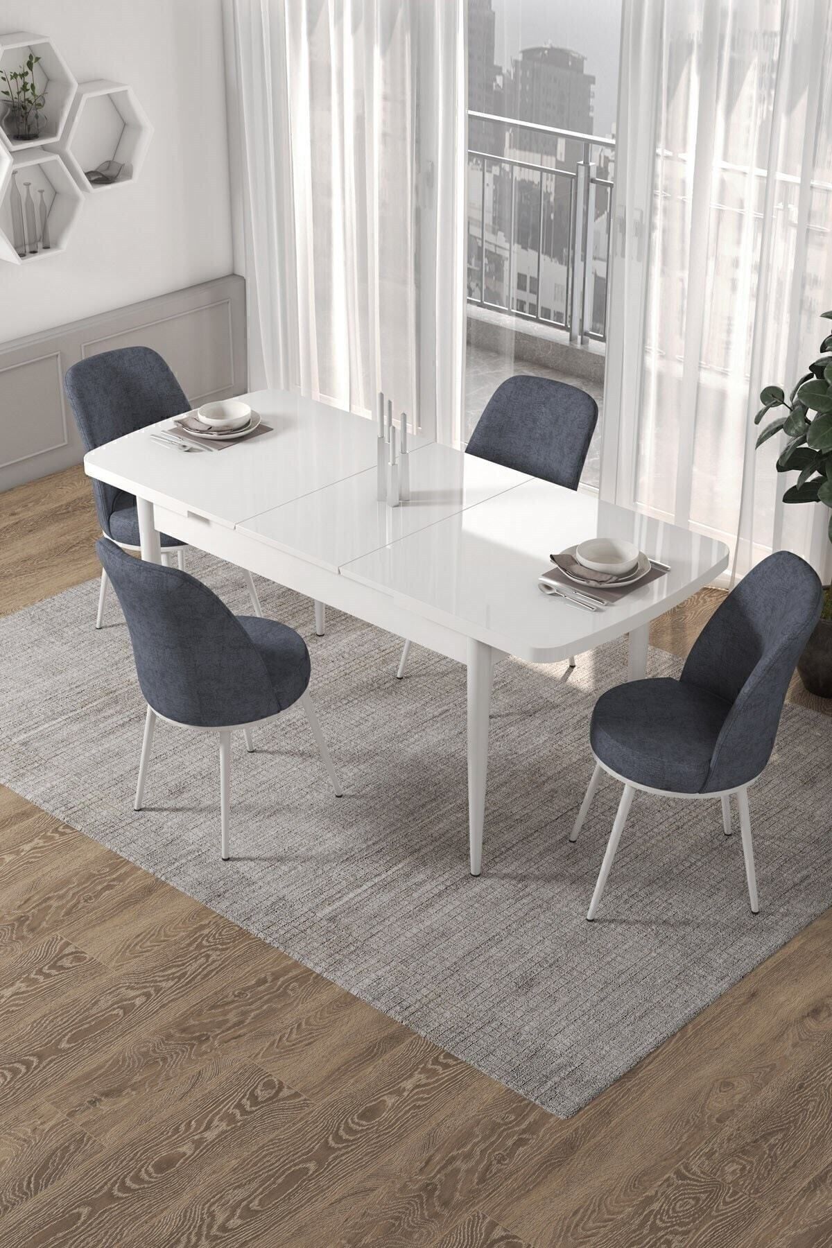 Kor Serisi 70x114 Açılabilir Mutfak Masası Takımı Beyaz Masa 4 Füme Sandalye Kor Serisi 70x114 Açılabilir Mutfak Masası Takımı Beyaz Masa 4 Füme Sandalye KOR01BYZ004 70 x 114