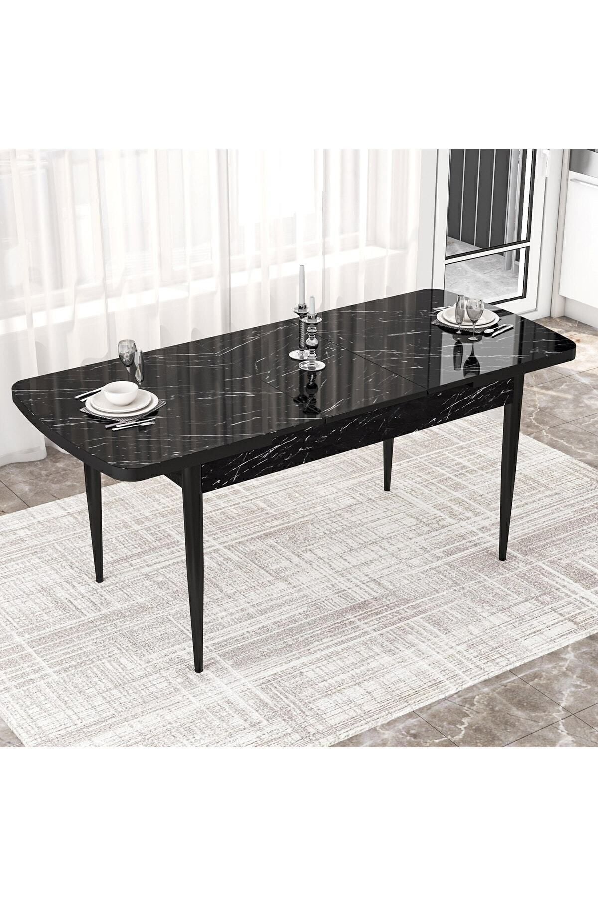 Kor Serisi 70x114 Açılabilir Mutfak Masası Takımı Siyah Mermer Desen Masa 6 Cappucino Sandalye Kor Serisi 70x114 Açılabilir Mutfak Masası Takımı Siyah Mermer Desen Masa 6 Cappucino Sandalye KOR01SYHMR006 70 x 114