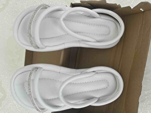 Diazz Kadin Beyaz Taş Detay Pofuduk Sandalet Diazz Kadin Beyaz Taş Detay Pofuduk Sandalet 270008 40