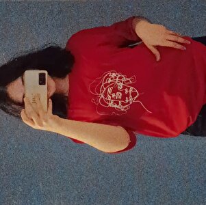 Kadın Kırmızı Yüz Baskı Detaylı Oversize T-shirt Kadın Kırmızı Yüz Baskı Detaylı Oversize T-shirt kırmızırenklileryüzdetaylı 2XL