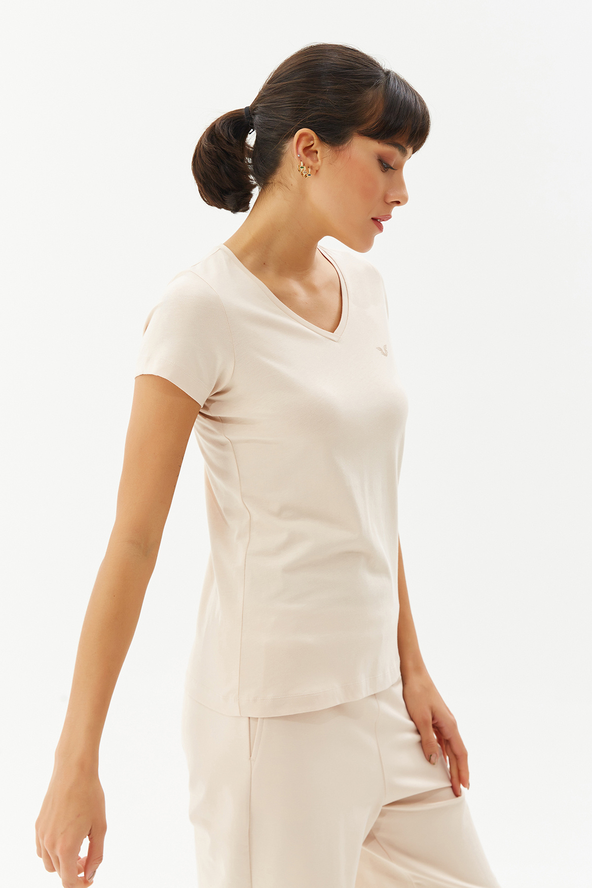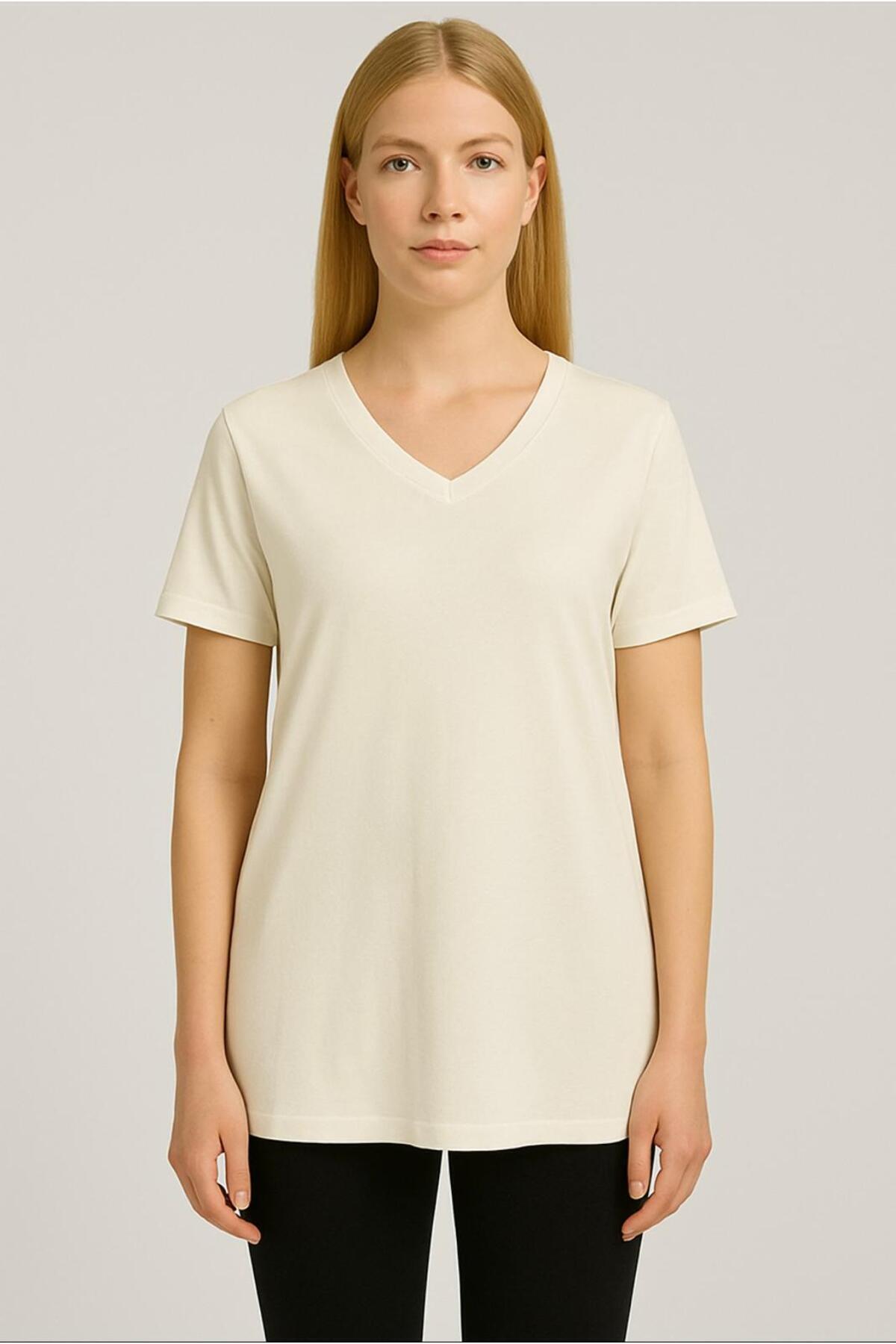 Kadın Krem V Yaka Kısa Kollu %100 Pamuk Tişört 8087 Kadın Krem V Yaka Kısa Kollu %100 Pamuk Tişört 8087 TYC00466728720 2XL