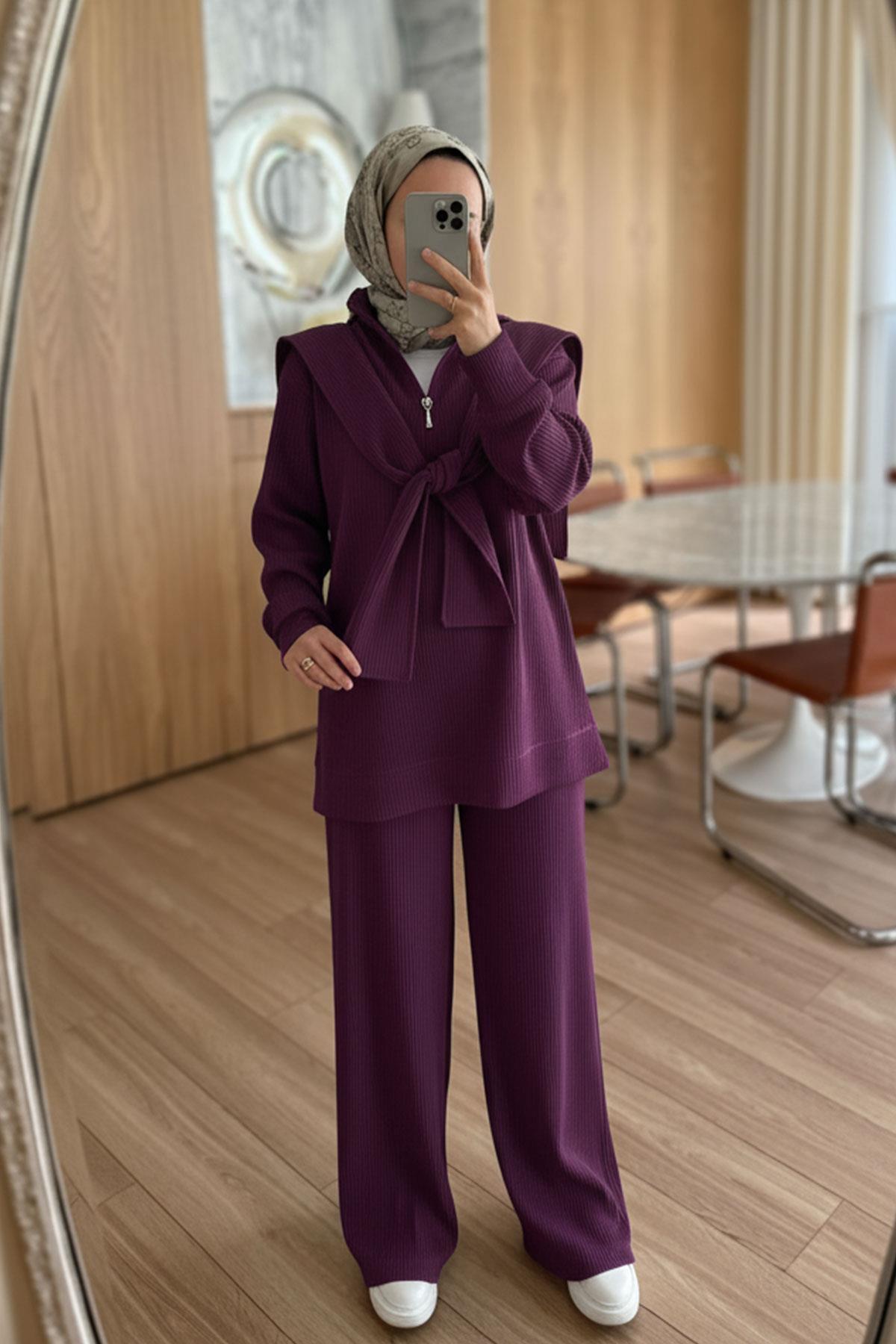 Işıltılı Merserize Tesettür 2'li Takım - Lacivert Işıltılı Merserize Tesettür 2'li Takım - Lacivert KH-1241 تک سایز