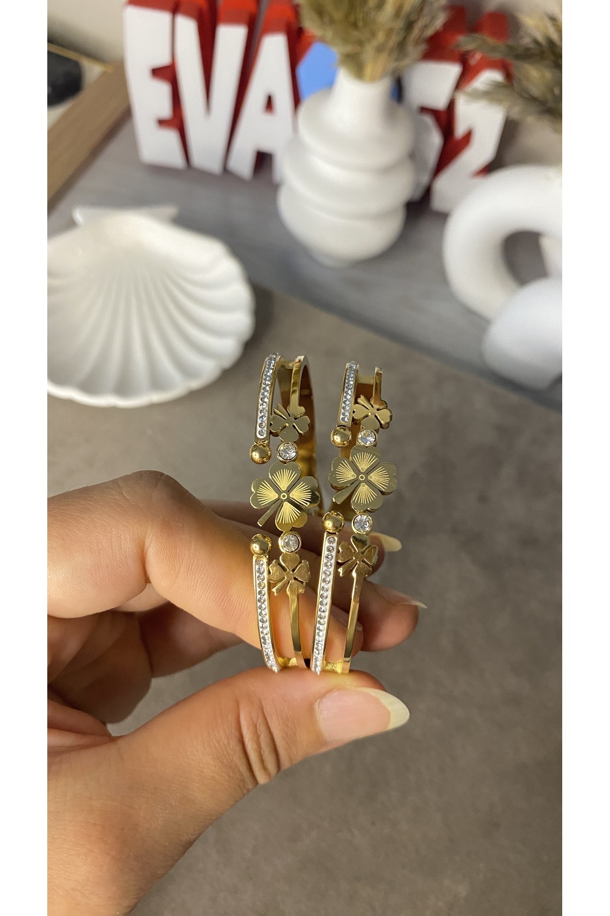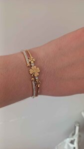 Kadın Taşlı Yonca Figürlü Çelik Bileklik Yeni Sezon Kadın Taşlı Yonca Figürlü Çelik Bileklik Yeni Sezon DMSA1018 18 cm