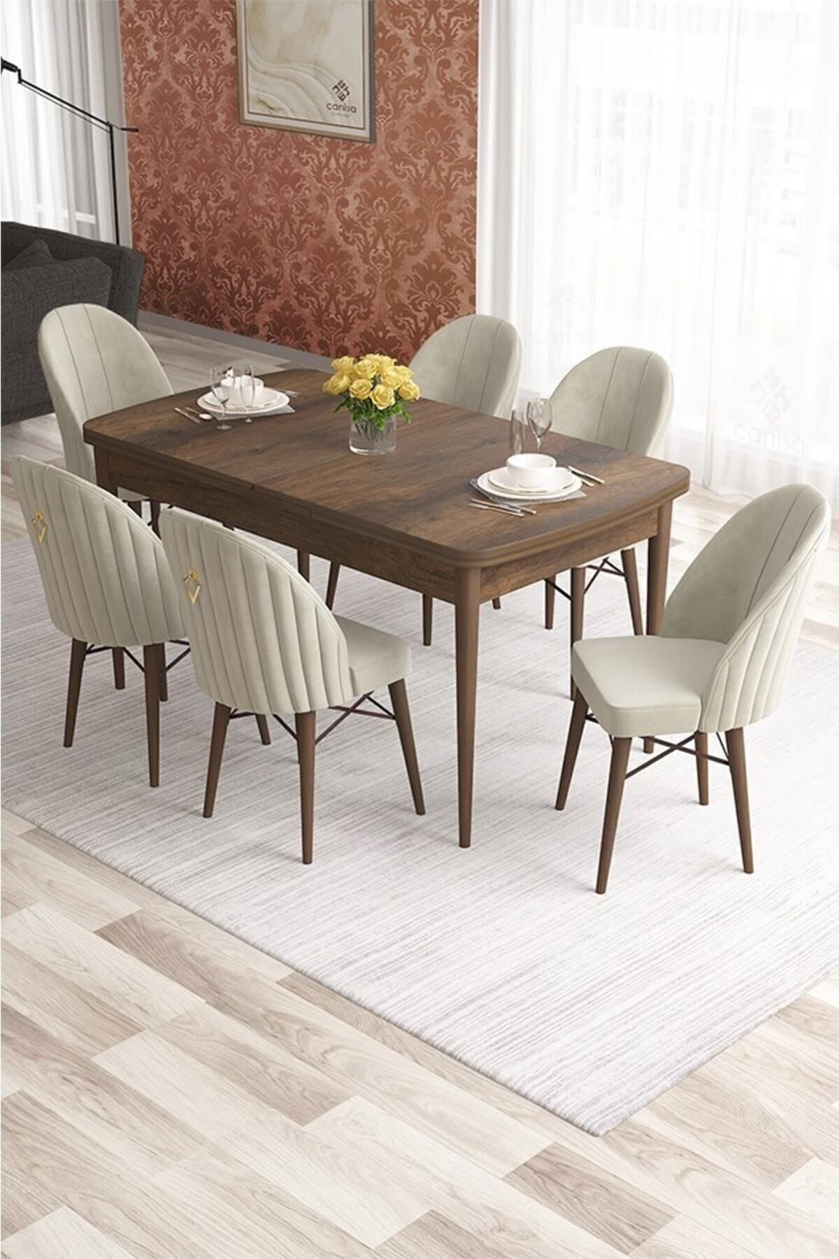 Taç Serisi Açılabilir Mutfak Masası Takımı 80x132 Barok Desen Masa 4 Krem Sandalye 1 Bench Taç Serisi Açılabilir Mutfak Masası Takımı 80x132 Barok Desen Masa 4 Krem Sandalye 1 Bench 22TAÇ01BRK04BNC تک سایز