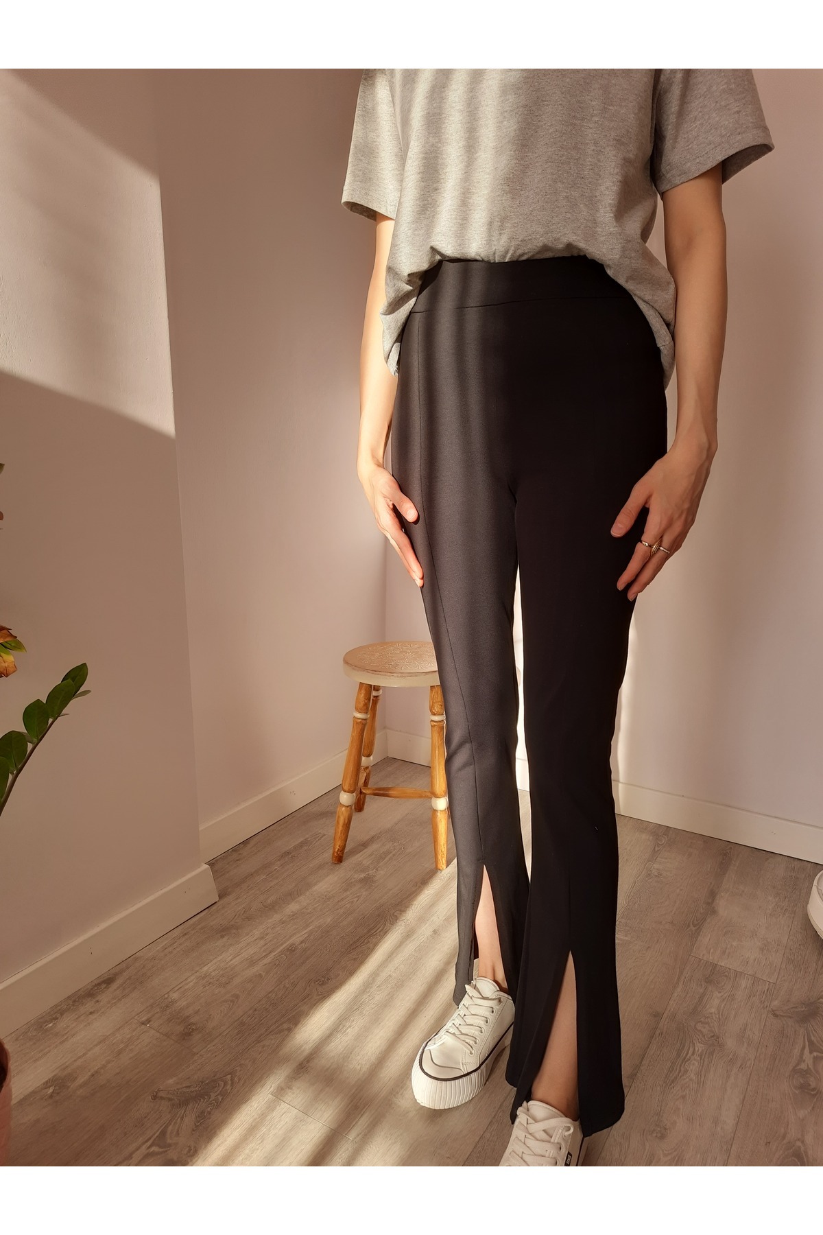 Kadın Siyah Yırtmaçlı Yüksek Bel Ispanyol Paça Pantolon Kadın Siyah Yırtmaçlı Yüksek Bel Ispanyol Paça Pantolon SWANA-2009 L
