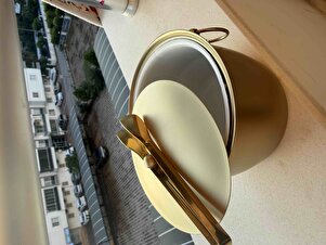 Değişik şekilli buz kalıpları kullanmayı çok seviyorum kahvelerimde ama şekilli buz kalıplarım bardağın içine koyunca gözükmüyordu hemen bir buz kovası arayışına girdim gold olması kahve köşeme de uyum sağladı. Çok beğendim. Tam bir fiyat performans ürünü. Misafirlerime artık buzları kahvenin yanında da götürüp görsel şölen yaratabilirim :) buz tutacağı da hediye olarak göndermişler çok zarif ve düşünceli bir hediye takımı tamamlamış oluyorsunuz ayrı ayrı almaktansa çünkü buzu tutacak bu ufak şeye de ihtiyacınız olacak sonuçta. Paketleme iyiydi. Teşekkürler