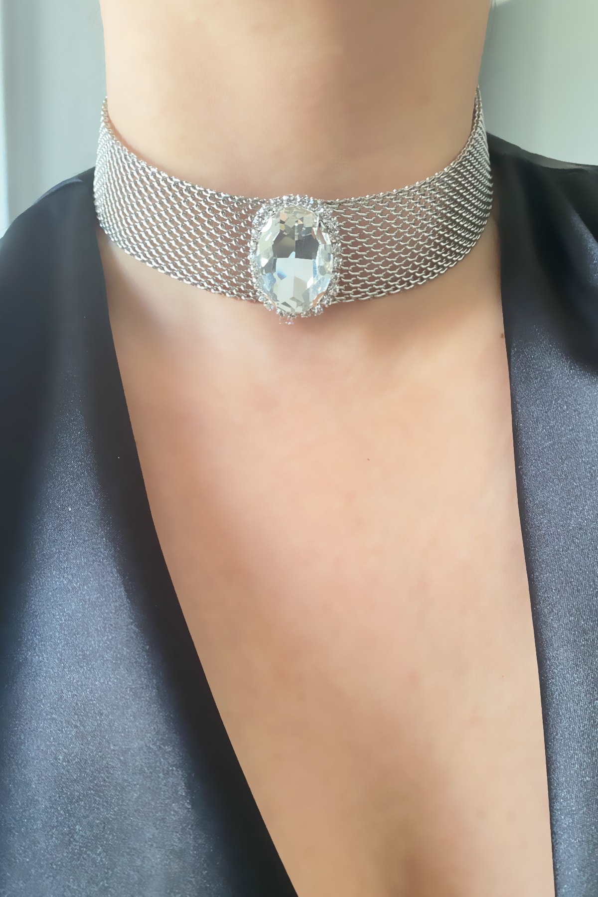 Hasır Örgü Kristal Taşlı Choker Kolye Hasır Örgü Kristal Taşlı Choker Kolye 621012037 تک سایز
