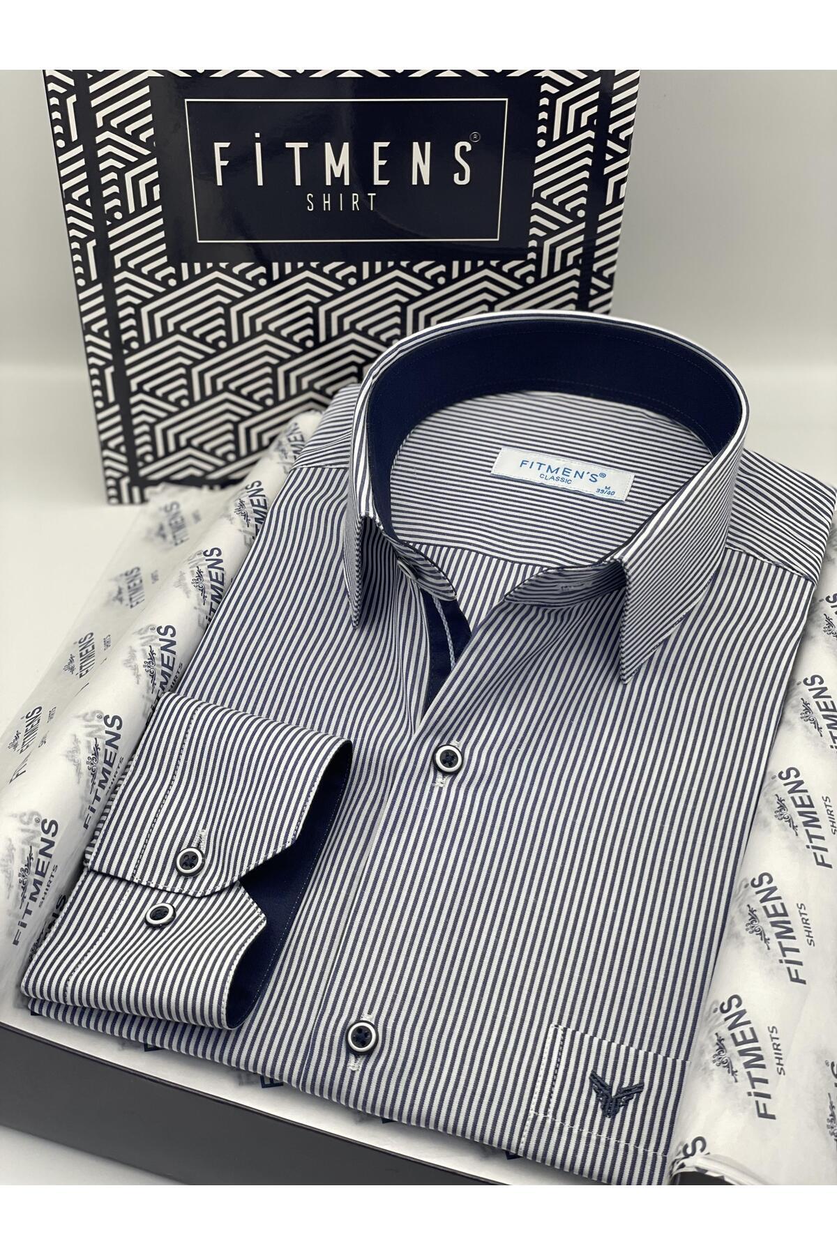 Klasik Uzun Kol Kalın Çizgili Hediye Kutulu Erkek Gömlek FS-001260 - Beyaz Saks Mavi Klasik Uzun Kol Kalın Çizgili Hediye Kutulu Erkek Gömlek FS-001260 - Beyaz Saks Mavi 5XL