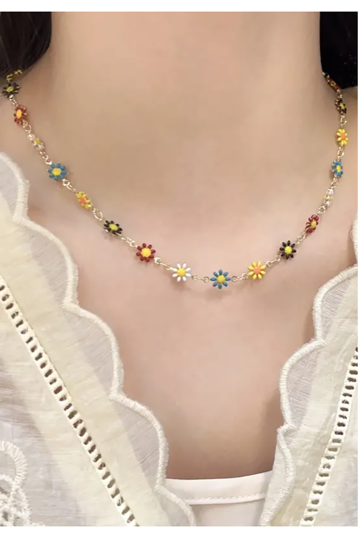 2022 Yeni Moda Renkli Çiçekler Papatya Boncuklu Kolye Kadınlar Için El Yapımı Kolye Takı 2022 Yeni Moda Renkli Çiçekler Papatya Boncuklu Kolye Kadınlar Için El Yapımı Kolye Takı GO2021 45 cm