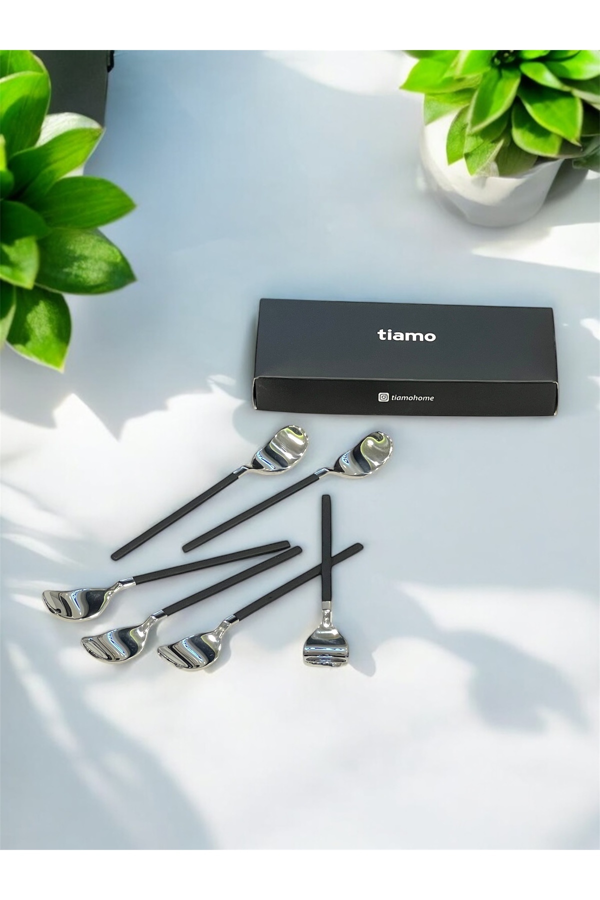 Özel Tasarım 6' Lı Siyah Lüks Çay Kaşığı Seti Takımı Özel Tasarım 6' Lı Siyah Lüks Çay Kaşığı Seti Takımı İL.275 تک سایز