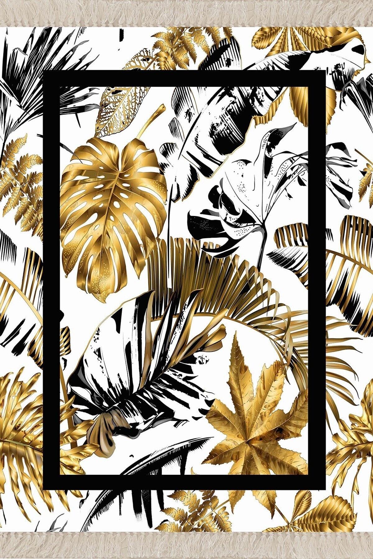 Altın Sarısı Gold Yaprak Desenli Dijital Baskı Yıkanabilir Tropikal Desenli Salon Halı Ve Yolluk Altın Sarısı Gold Yaprak Desenli Dijital Baskı Yıkanabilir Tropikal Desenli Salon Halı Ve Yolluk BFONTR4 160 x 230