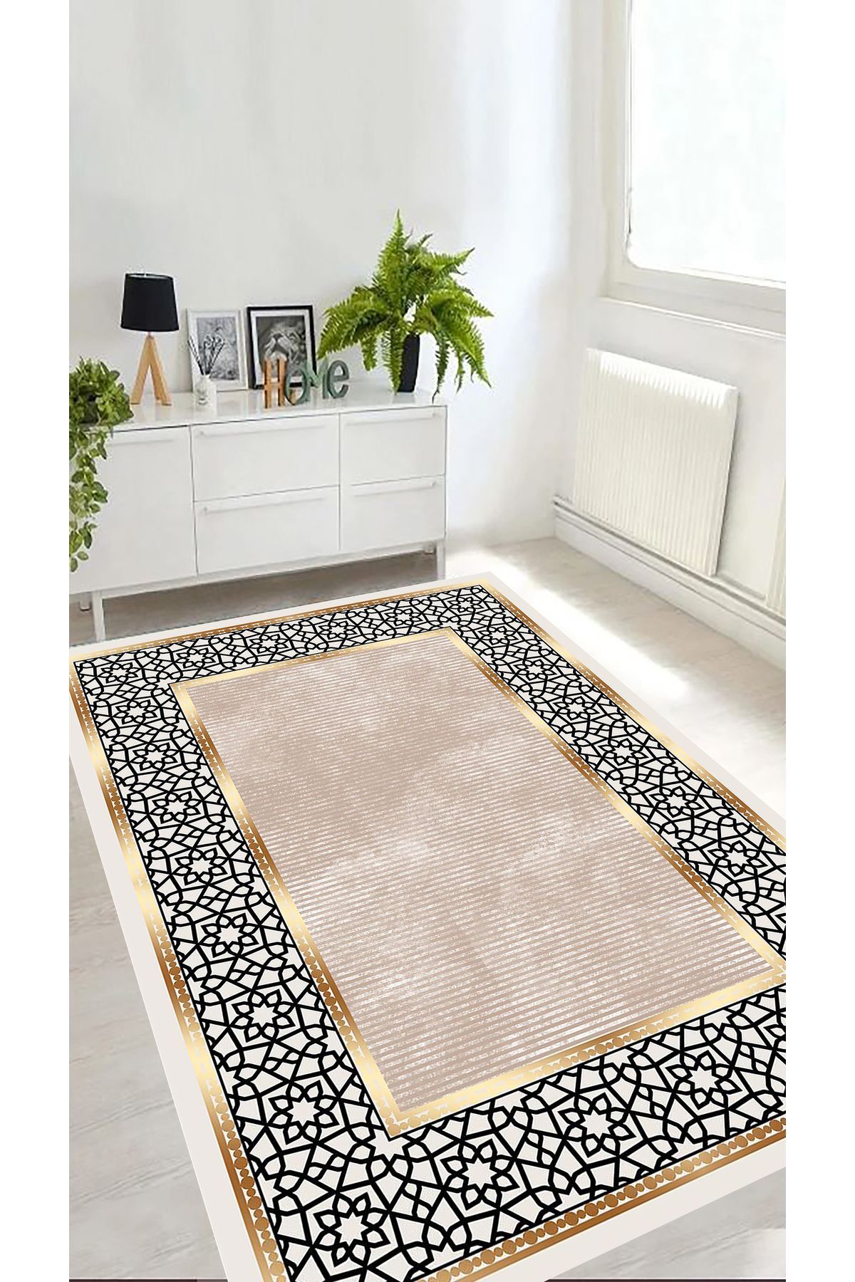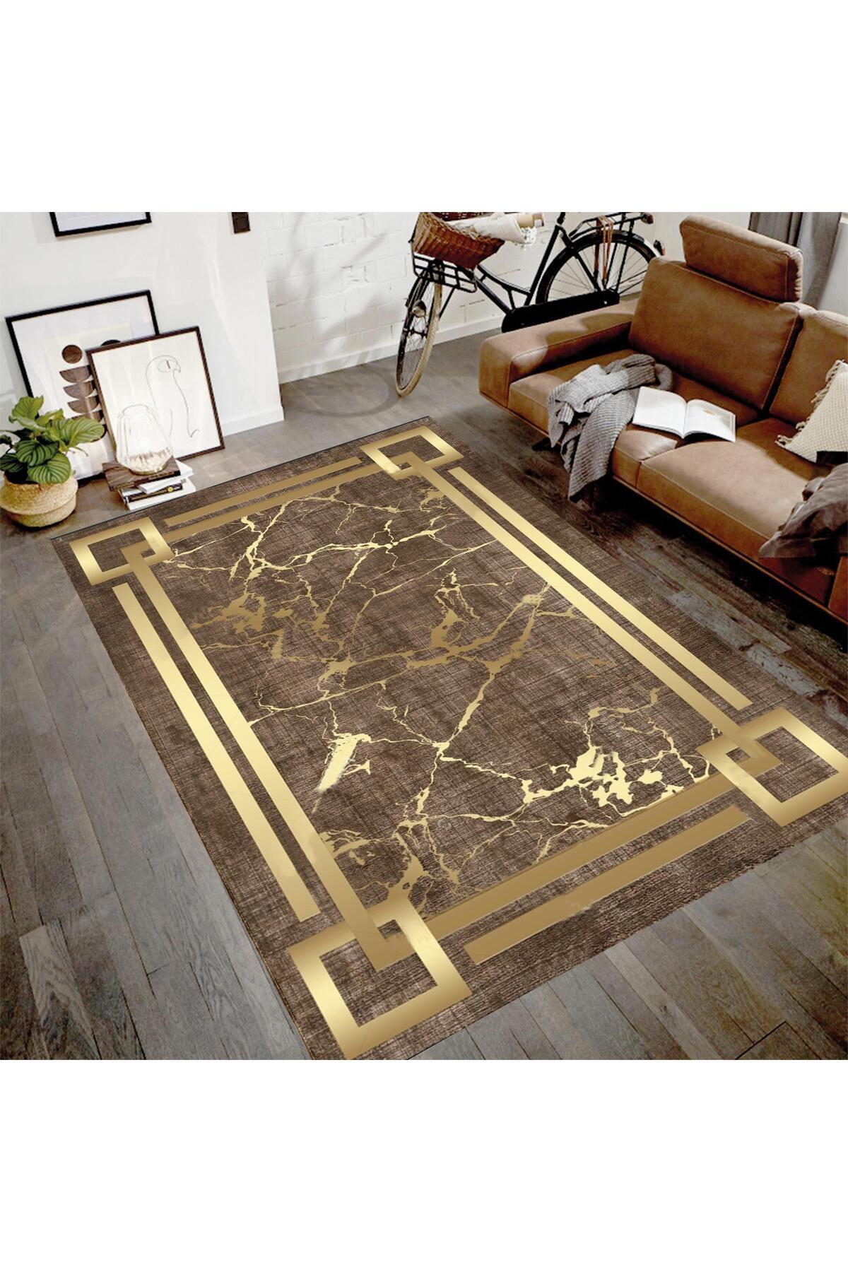 Beyaz Zemin Gold Şeritli Mermer Desenli Dijital Baskı Yıkanabilir Kaymaz Taban Salon Halı Ve Yolluk Beyaz Zemin Gold Şeritli Mermer Desenli Dijital Baskı Yıkanabilir Kaymaz Taban Salon Halı Ve Yolluk BFOMRM1 160 x 230