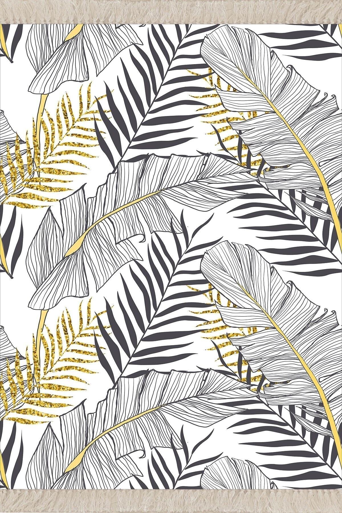 Gold Geçişli Tropikal Yaprak Desenli Dijital Baskılı Kaymaz Taban Modern Salon Halısı Ve Yolluk Gold Geçişli Tropikal Yaprak Desenli Dijital Baskılı Kaymaz Taban Modern Salon Halısı Ve Yolluk BFONTR1 160 x 230
