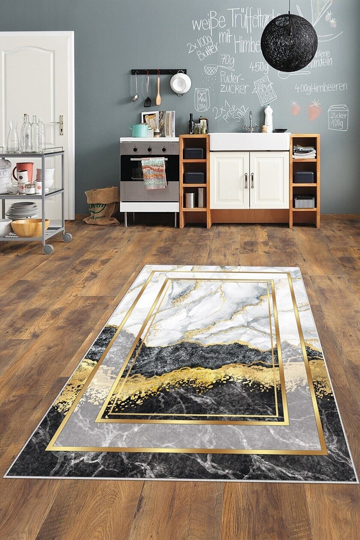 Mermer Desenli Gold Çerçeveli Dijital Baskı Yıkanabilir Kaymaz Taban Salon Halı Ve Yolluk Mermer Desenli Gold Çerçeveli Dijital Baskı Yıkanabilir Kaymaz Taban Salon Halı Ve Yolluk BFOMRM3 160 x 230