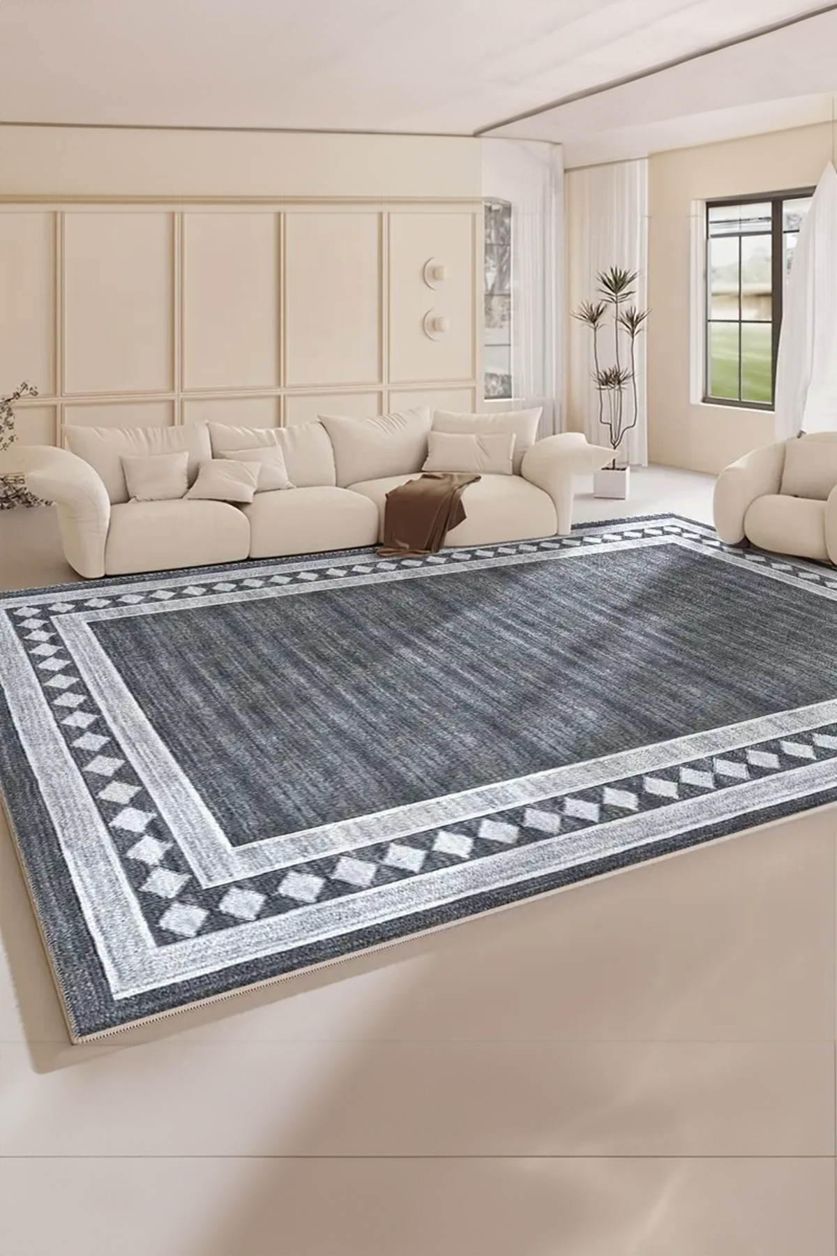 Beyaz Mermer Desen Siyah Çerçeve Yıkanabilir Kaymaz Taban Leke Tutmaz Modern Salon Halısı Ve Yolluk Beyaz Mermer Desen Siyah Çerçeve Yıkanabilir Kaymaz Taban Leke Tutmaz Modern Salon Halısı Ve Yolluk MRTMOD21 160 x 230