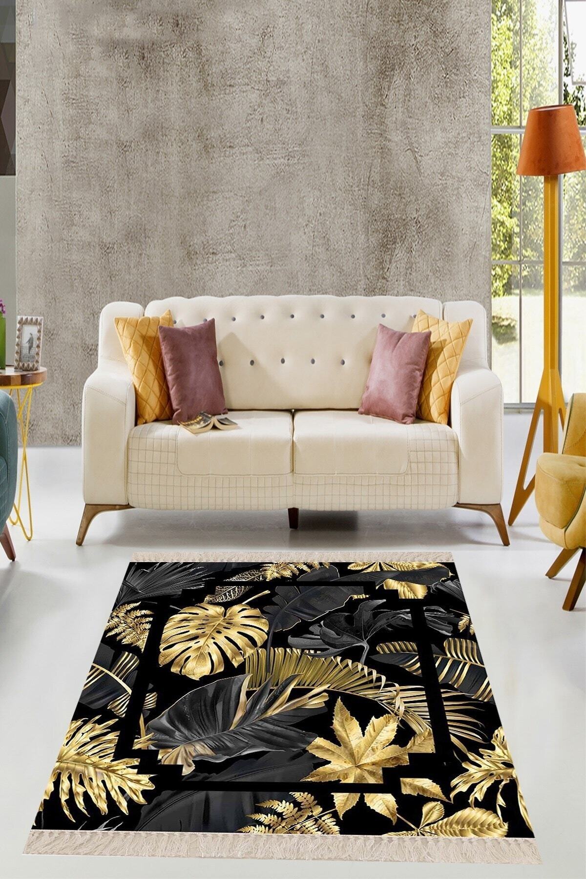 Gold Yaprak Desenli Dijital Baskı Yıkanabilir Kaymaz Taban Klasik Salon Halısı Gri Gold Yaprak Desenli Dijital Baskı Yıkanabilir Kaymaz Taban Klasik Salon Halısı Gri BFONTR4 160 x 230