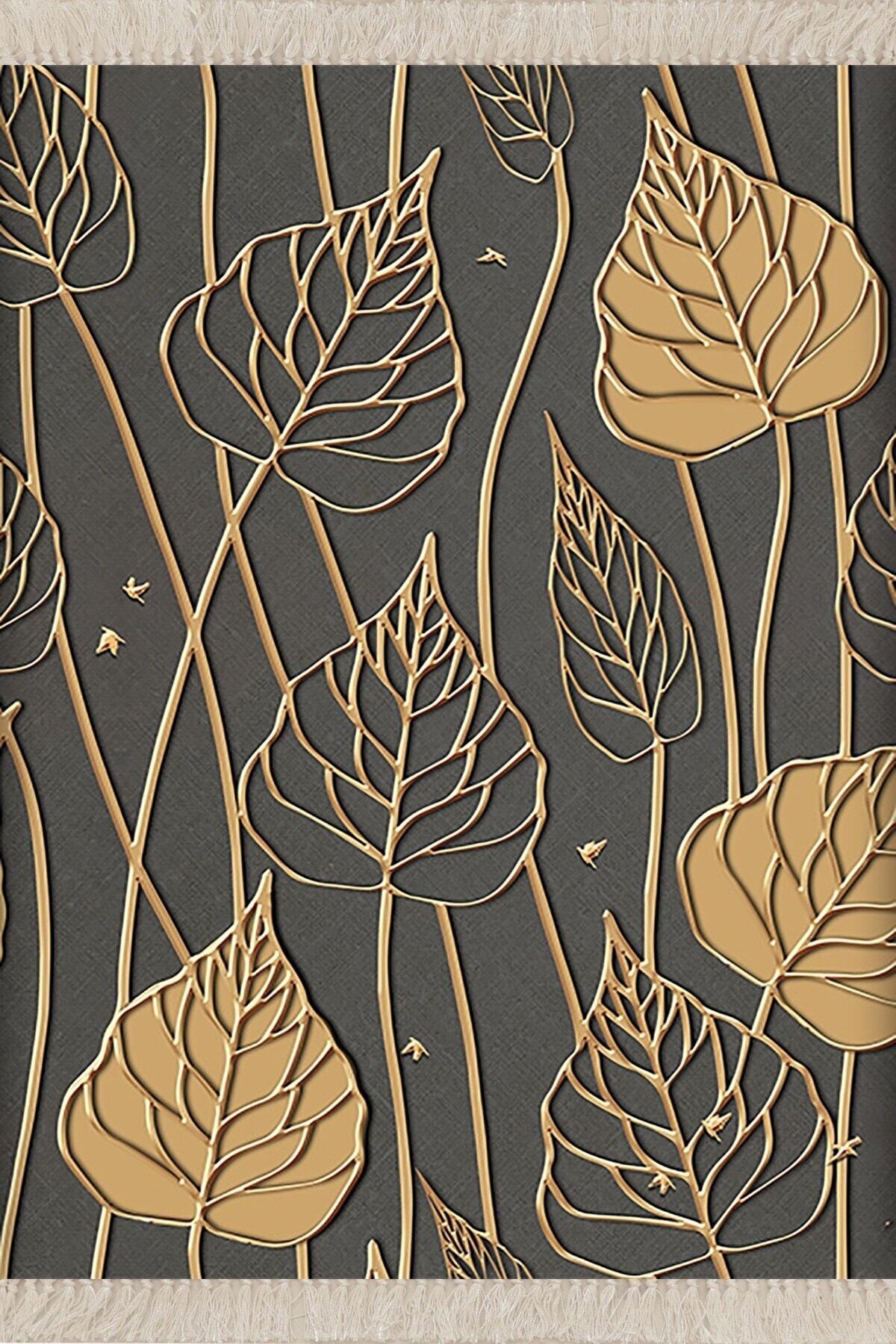 Gold Yaprak Desenli Dijital Baskılı Kaymaz Taban Modern Salon Halısı Ve Yolluk Gold Yaprak Desenli Dijital Baskılı Kaymaz Taban Modern Salon Halısı Ve Yolluk BFONTR3 160 x 230