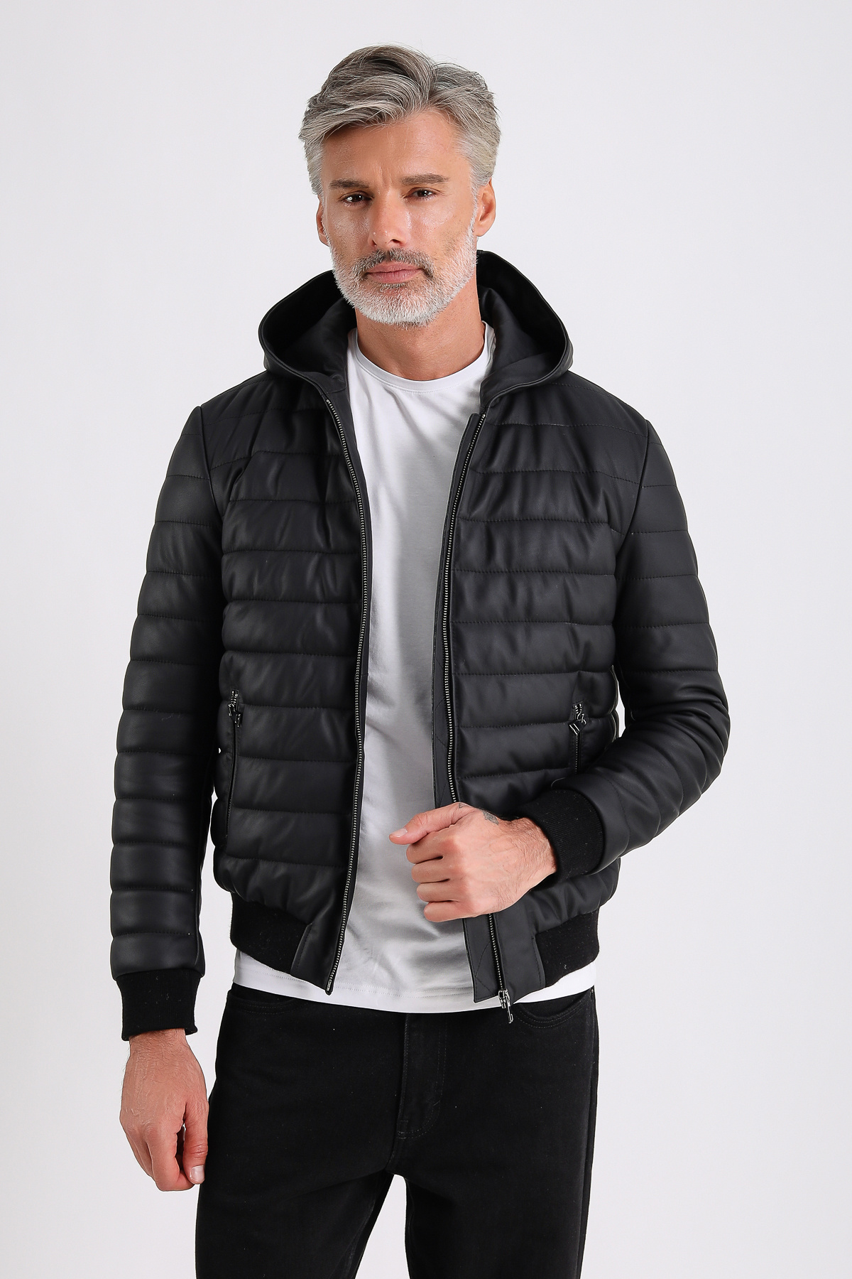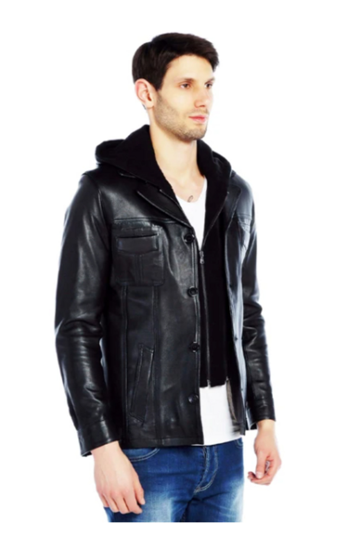 A-501 Erkek Hakiki Deri Kapşonlu Mont Siyah Renk A-501 Erkek Hakiki Deri Kapşonlu Mont Siyah Renk