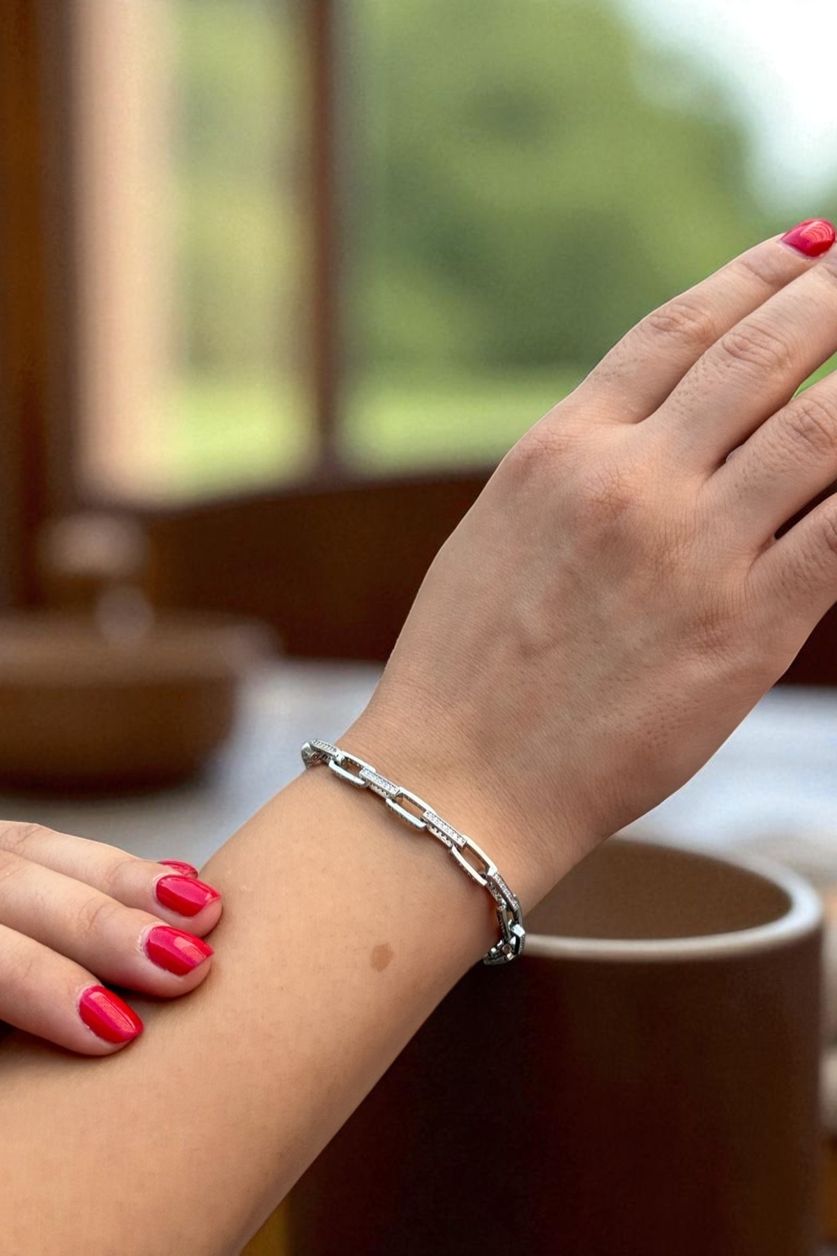 Gümüş Kaplama Ataç Model Çelik Bileklik Gümüş Kaplama Ataç Model Çelik Bileklik BUBA-BIL22 18 cm