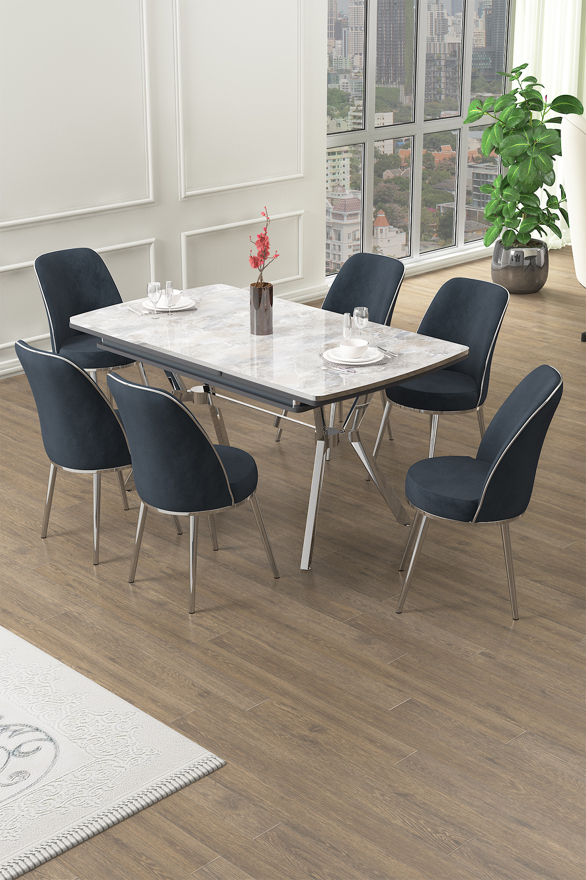 Nef Serisi 70x114 Açılabilir Mdf Barok Ahşap Desen Masa Takımı Ve 6 Lacivert Sandalye Nef Serisi 70x114 Açılabilir Mdf Barok Ahşap Desen Masa Takımı Ve 6 Lacivert Sandalye 22NEF01BRK06 تک سایز
