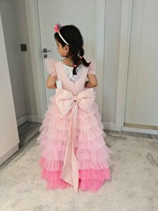 Kız Çocuk Pembe Renk Doğum Günü Parti Özel Gün Elbisesi Kız Çocuk Pembe Renk Doğum Günü Parti Özel Gün Elbisesi IH77 11-12 Yaş