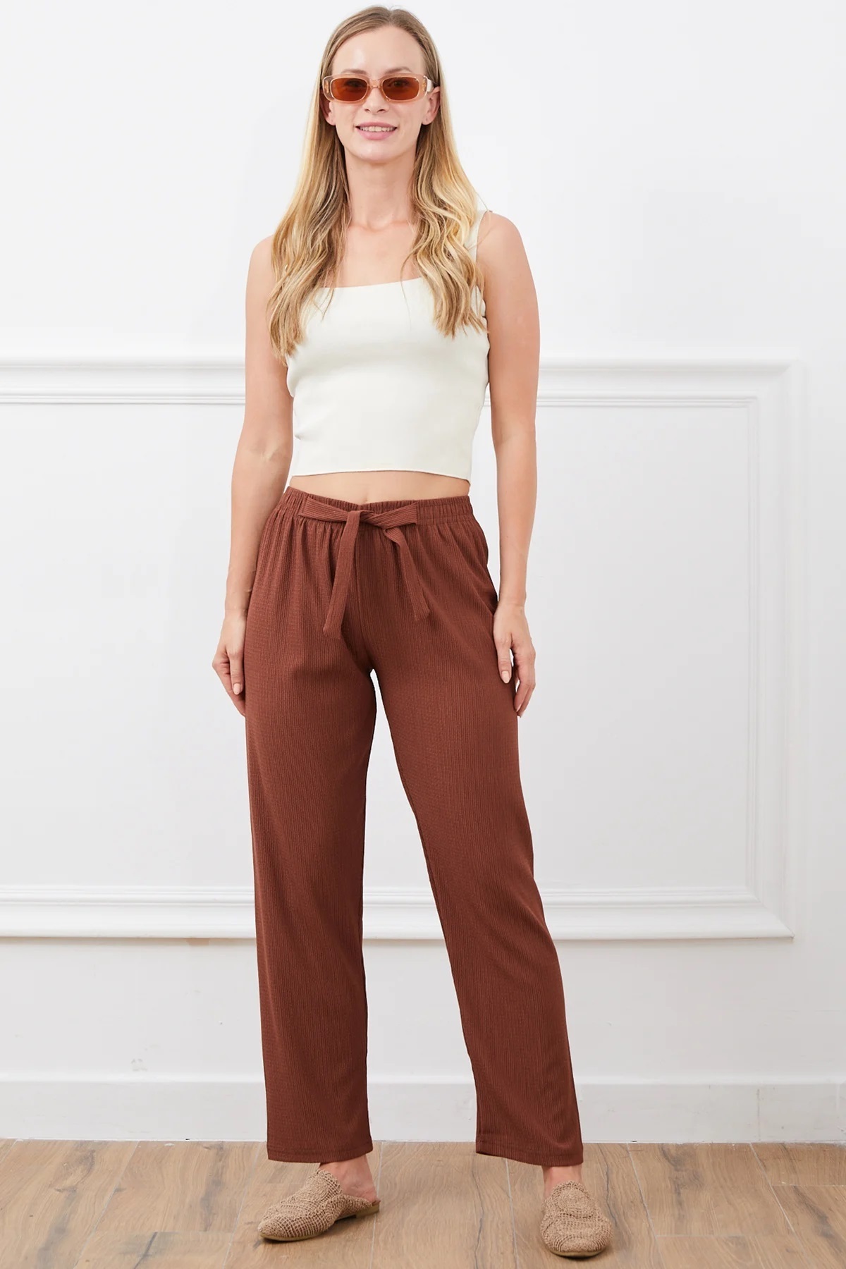 Kahverengi Fitilli Cep Detay Spor Örme Pantolon Kahverengi Fitilli Cep Detay Spor Örme Pantolon MM22PN0219 XL