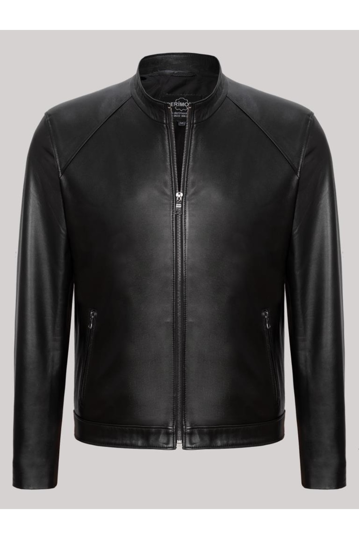 Hakiki Kuzu Derisi Siyah Erkek Deri Mont Yandan Fermuarlı Mono Yaka Deri Ceket Hakiki Kuzu Derisi Siyah Erkek Deri Mont Yandan Fermuarlı Mono Yaka Deri Ceket EM-6034 2XL