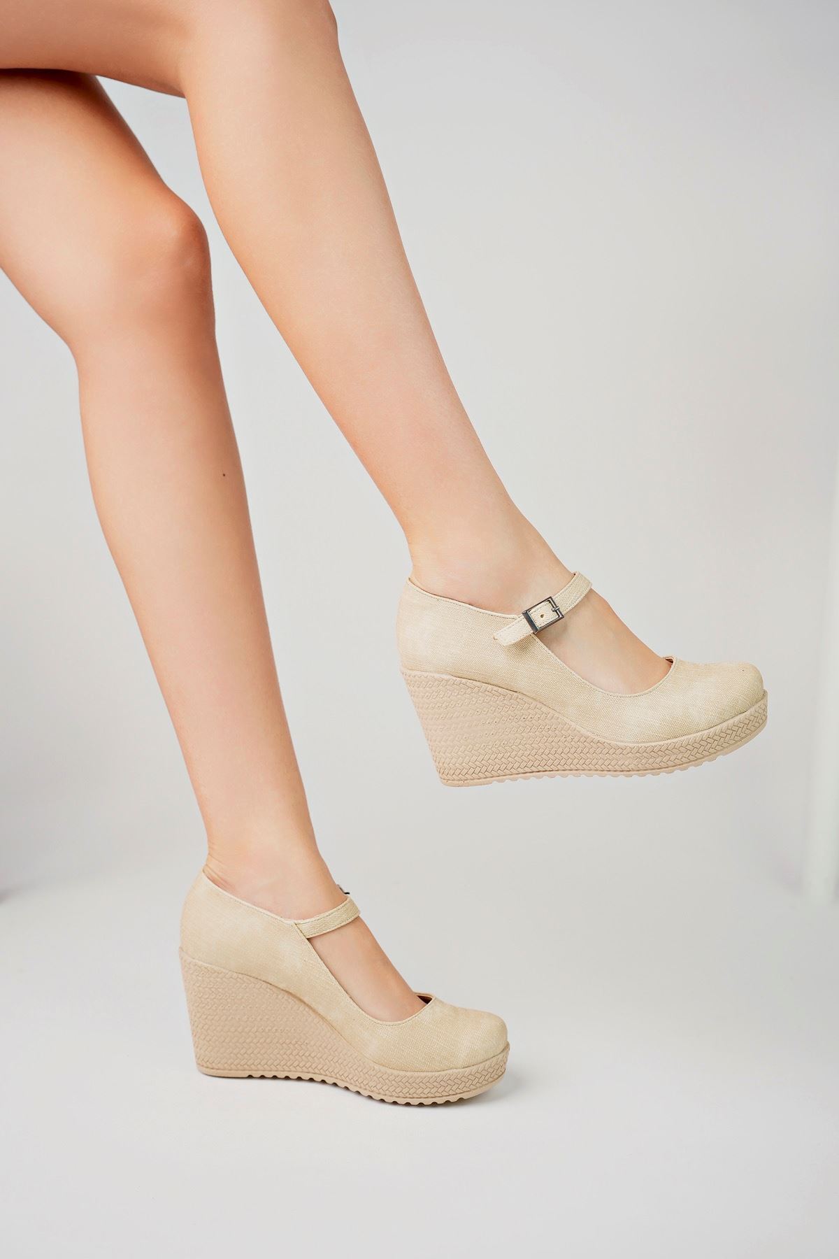 Dolgu Taban Bilekten Tokalı Vizon İRM Kot Ayakkabı Dolgu Taban Bilekten Tokalı Vizon İRM Kot Ayakkabı OSFA27GA 40