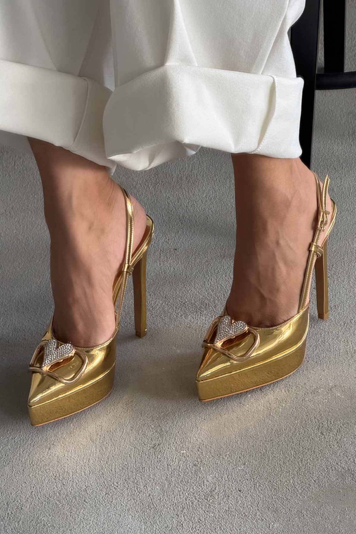 Venatia Taşlı Light Gold 10 Cm Kadın Klasik Topuklu Ayakkabı Venatia Taşlı Light Gold 10 Cm Kadın Klasik Topuklu Ayakkabı AP-M02714 41