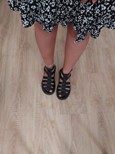 Benia Kadın Hakiki Deri Kafesli Sandalet Siyah Sandalet Benia Kadın Hakiki Deri Kafesli Sandalet Siyah Sandalet MNJ.036 40