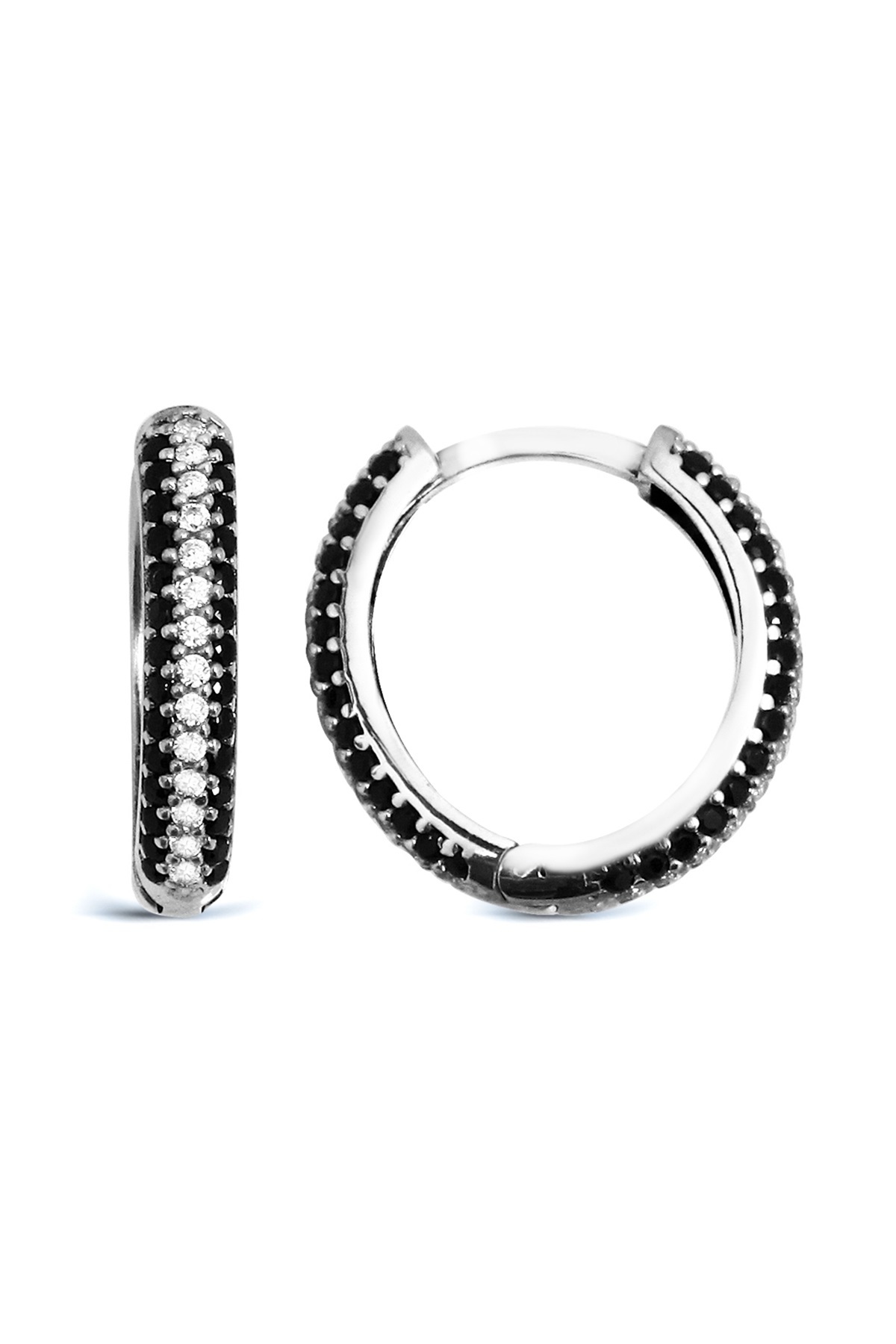 925 Ayar Gümüş Siyah Taşlı Halka Küpe - K051301 925 Ayar Gümüş Siyah Taşlı Halka Küpe - K051301 تک سایز