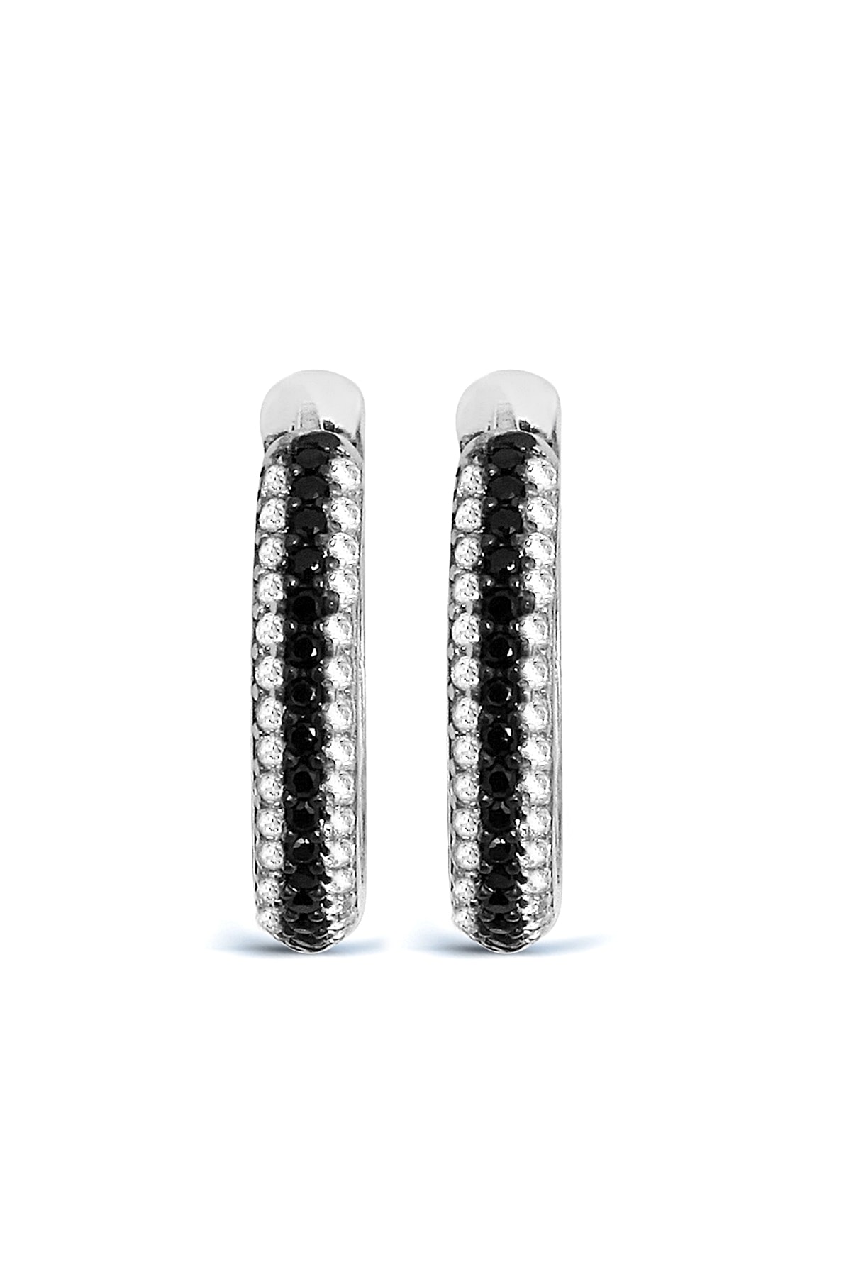 925 Ayar Gümüş Siyah Beyaz Taşlı Rose Halka Küpe - K050401 925 Ayar Gümüş Siyah Beyaz Taşlı Rose Halka Küpe - K050401 تک سایز