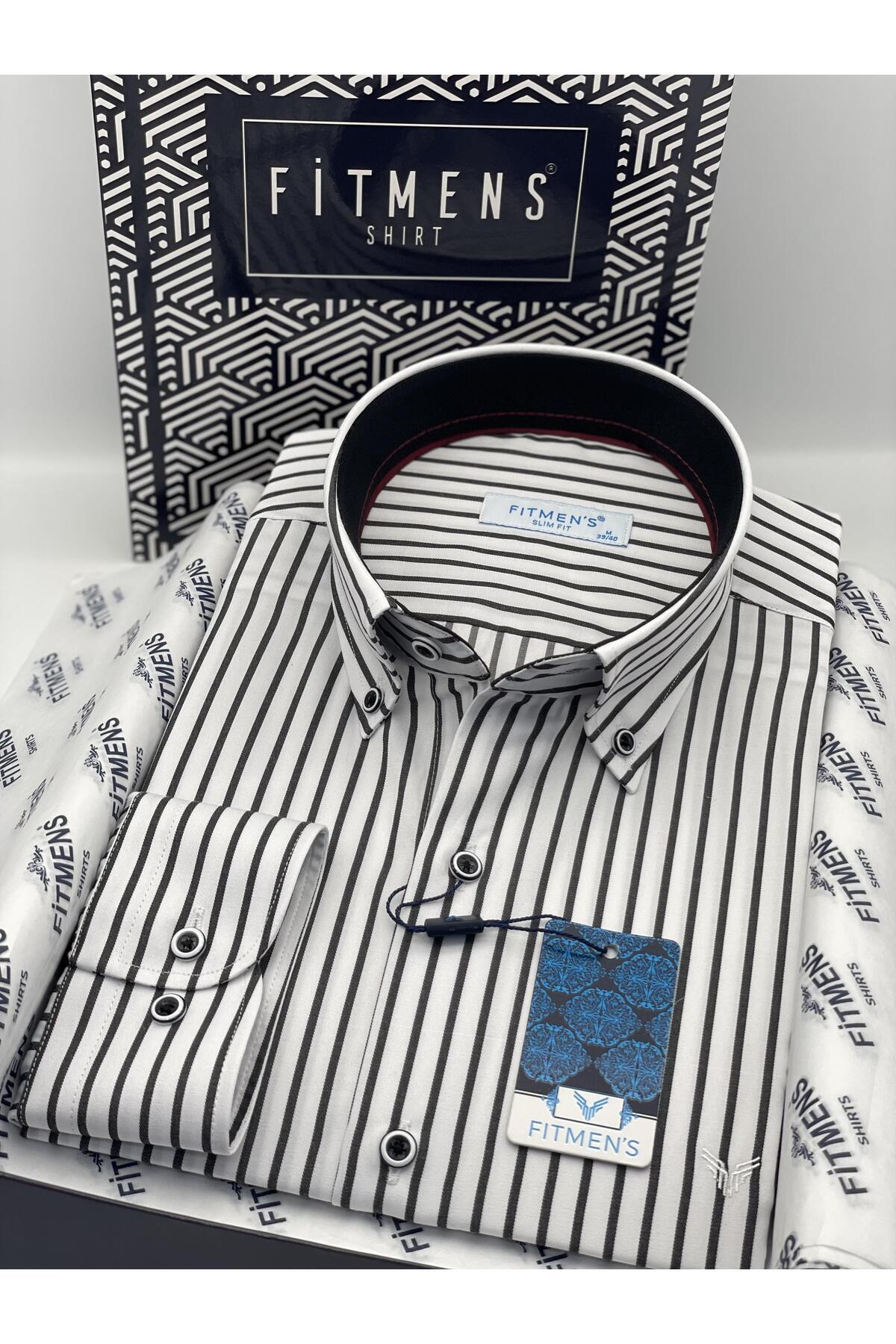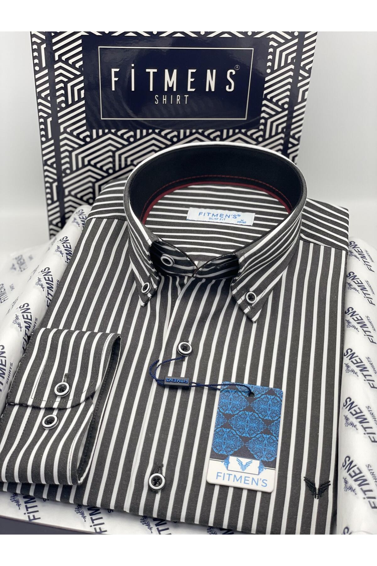 Slim Fit Uzun Kol Premium Kalın Çizgili Yaka Düğmeli Hediye Kutulu Kolay Ütülenebilir Erkek Gömlek F Slim Fit Uzun Kol Premium Kalın Çizgili Yaka Düğmeli Hediye Kutulu Kolay Ütülenebilir Erkek Gömlek F FS-001375 3XL