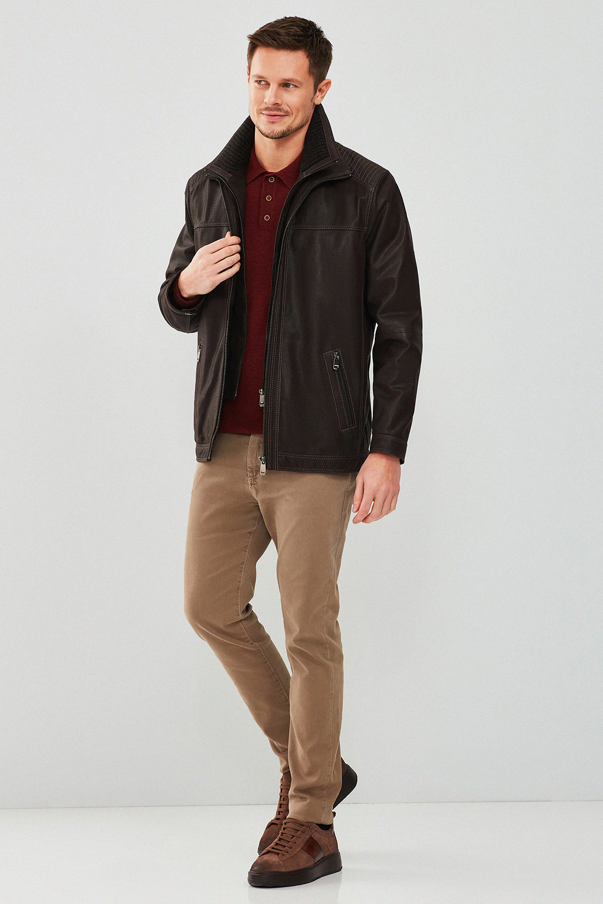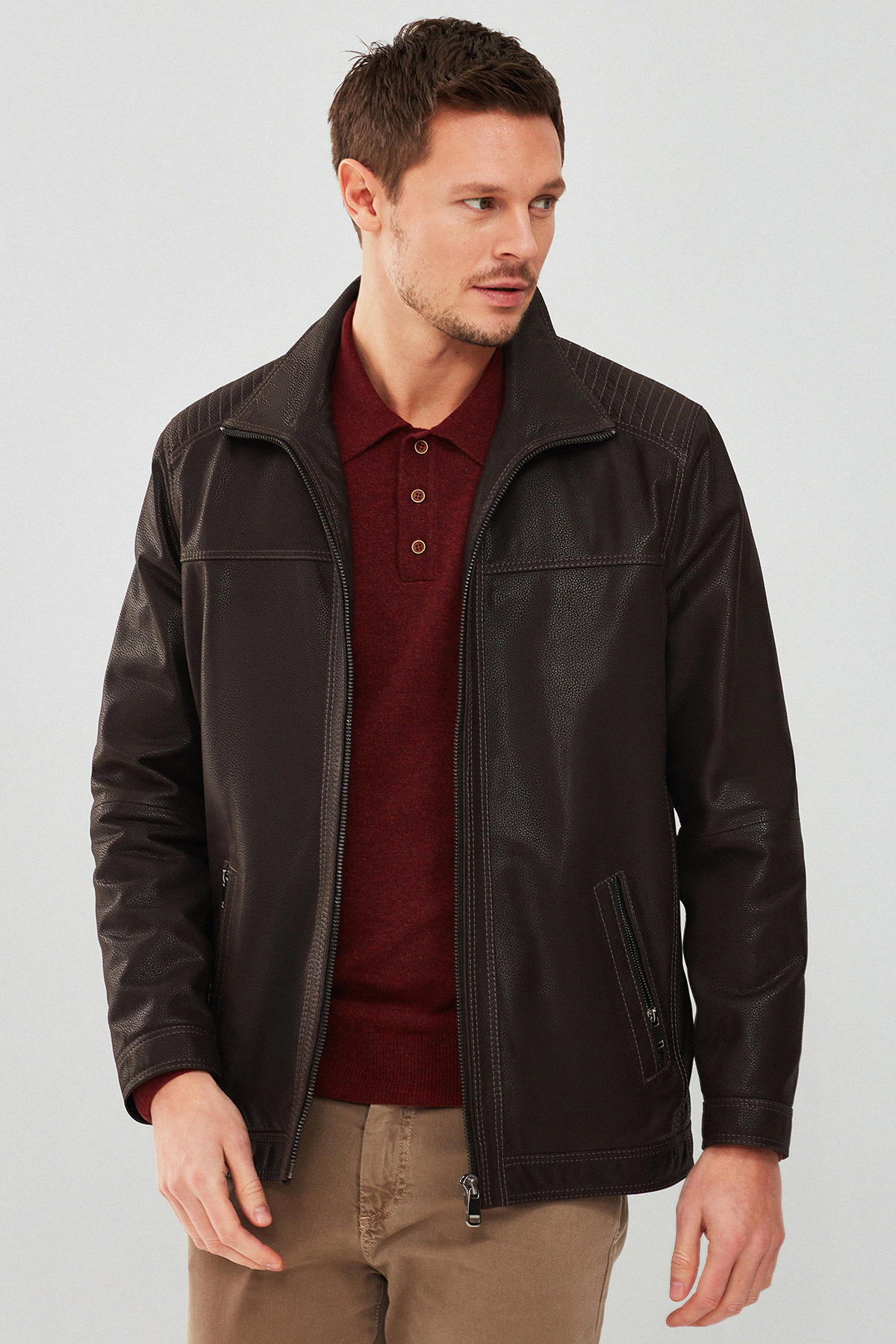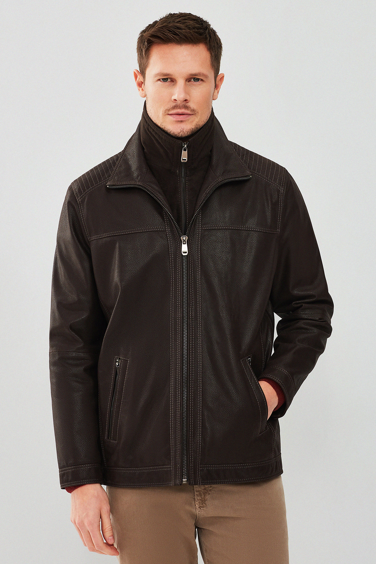 Roberto Erkek Kahverengi Çift Yakalı Deri Ceket 18WGD6313D2 Roberto Erkek Kahverengi Çift Yakalı Deri Ceket 18WGD6313D2 3XL