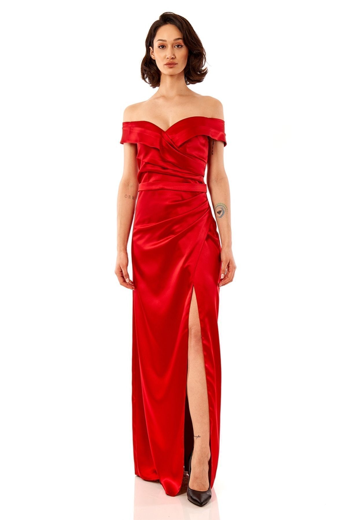 Esnek Saten Kumaş Kruvaze Detaylı Kadın Abiye Elbise Esnek Saten Kumaş Kruvaze Detaylı Kadın Abiye Elbise 7352 42