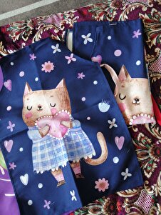 Ays Home Kalpli Kedi Anne Çocuk 2'li Mutfak Önlüğü Seti Ays Home Kalpli Kedi Anne Çocuk 2'li Mutfak Önlüğü Seti AYSO323 تک سایز