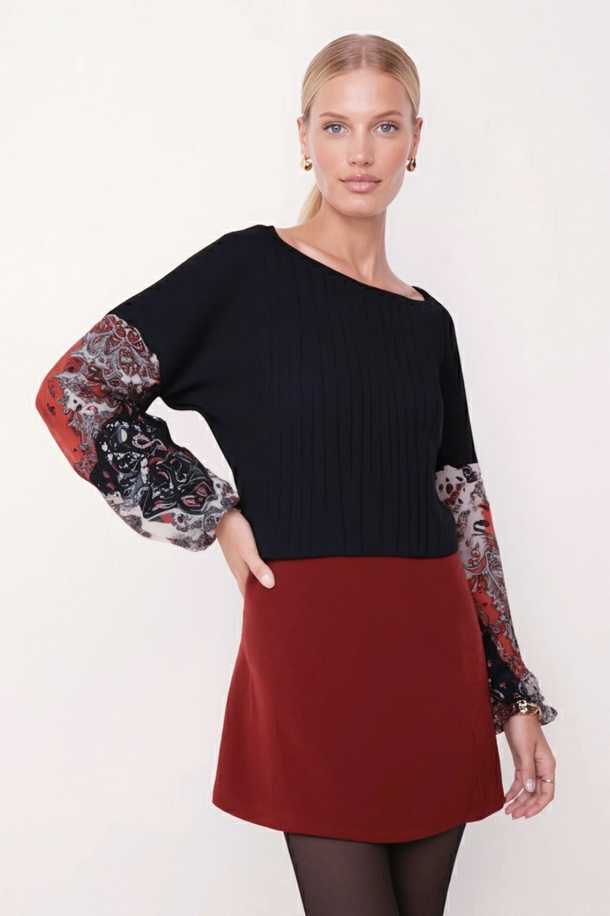 Kadın Siyah Kolu Desenli Balonlu Triko Bluz ARM-20K081001 Kadın Siyah Kolu Desenli Balonlu Triko Bluz ARM-20K081001 Standart