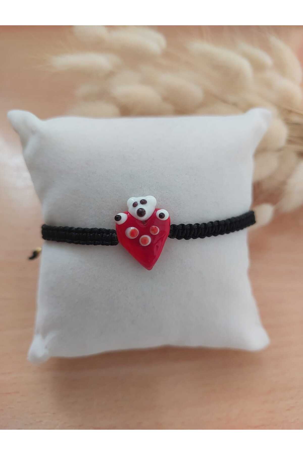 Kırmızı Renk Göz Desen Örme Bilezik Kırmızı Renk Göz Desen Örme Bilezik B75 تک سایز