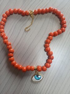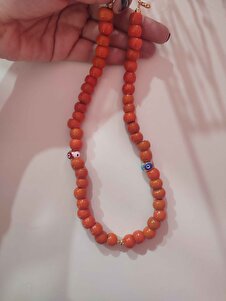 Turuncu Bodrum Kolye Gold Mavi Göz Detaylı Turuncu Bodrum Kolye Gold Mavi Göz Detaylı EA26 تک سایز