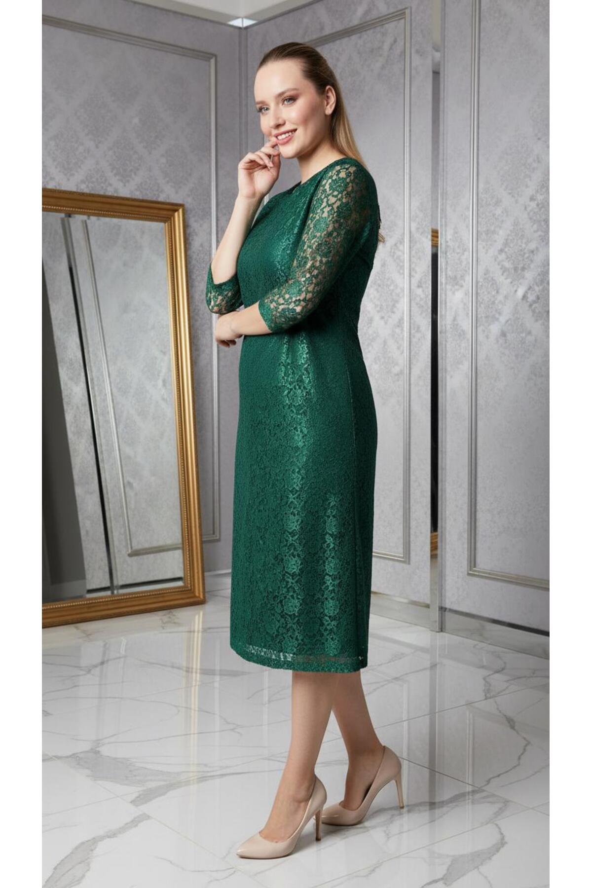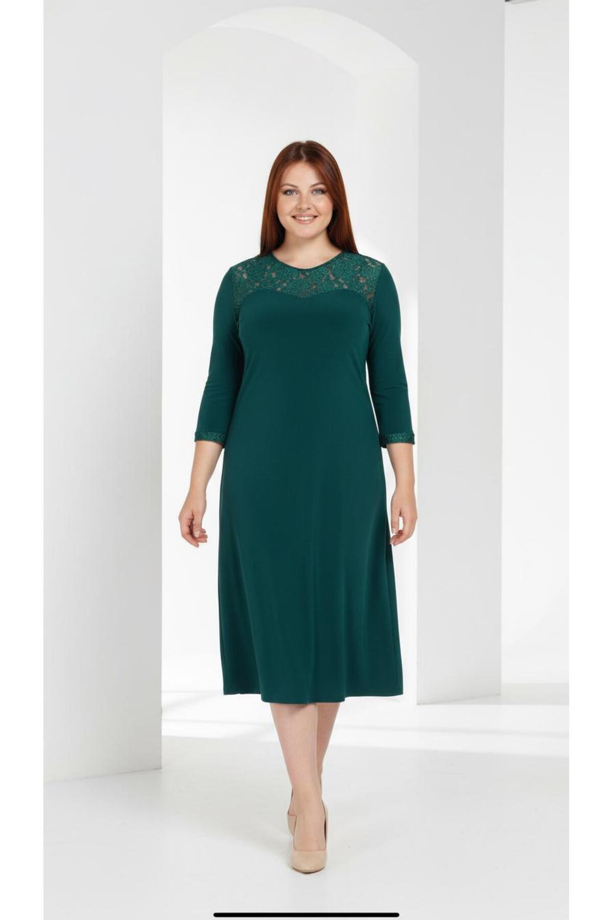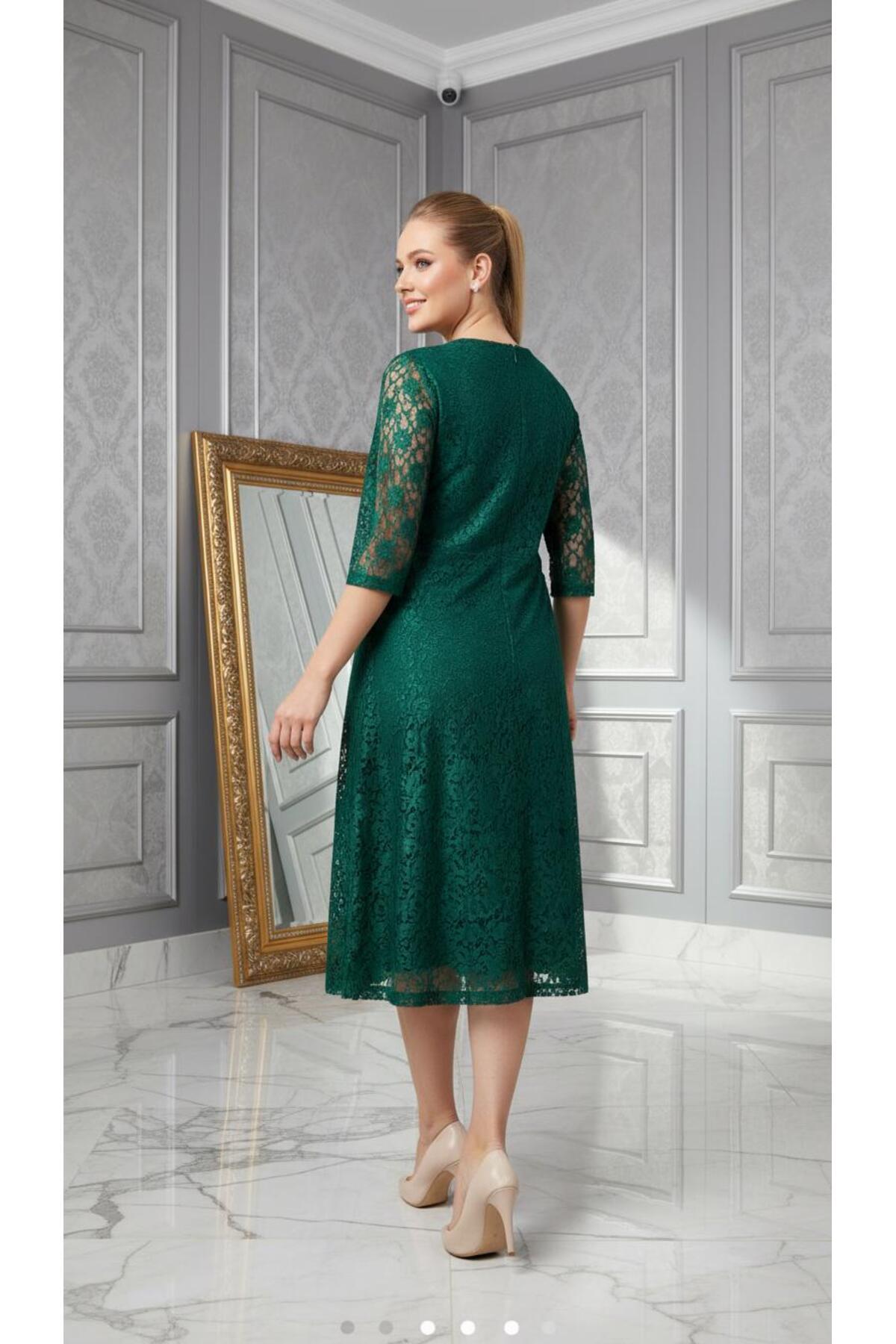 Büyük Beden Kloş Yeşil Dantel Abiye Elbise-4036y Büyük Beden Kloş Yeşil Dantel Abiye Elbise-4036y 54