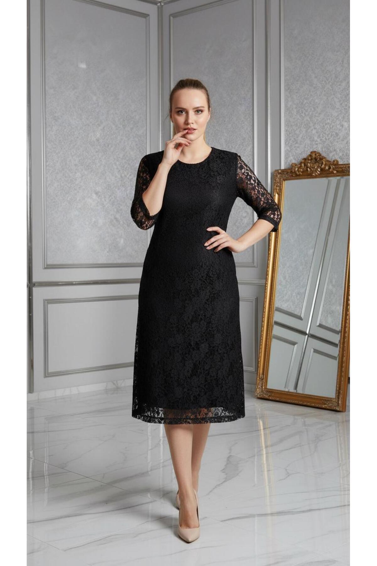 Büyük Beden Kloş Siyah Dantel Abiye Elbise-4036s Büyük Beden Kloş Siyah Dantel Abiye Elbise-4036s 54