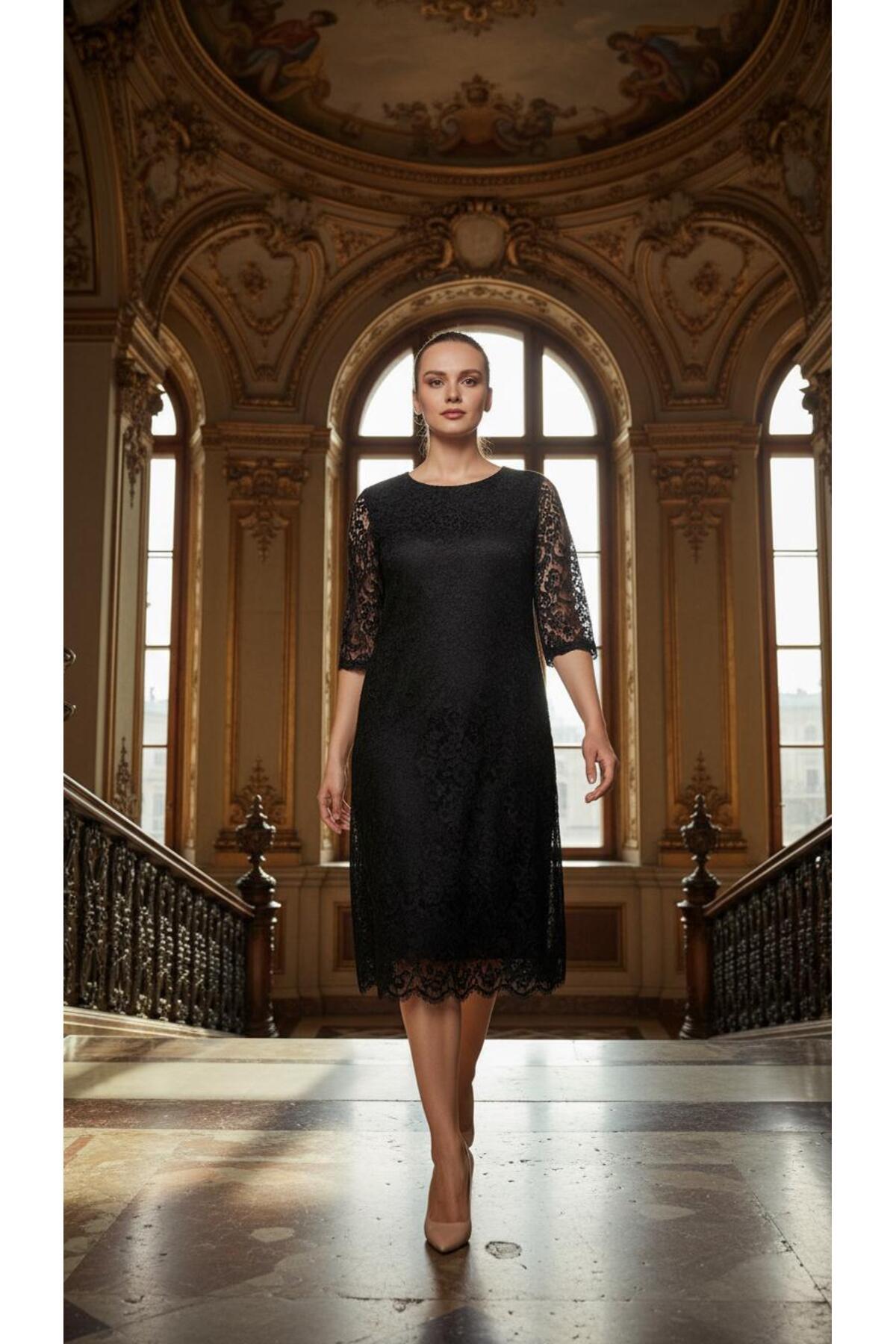 Büyük Beden Kloş Lacivert Dantel Abiye Elbise-4036l Büyük Beden Kloş Lacivert Dantel Abiye Elbise-4036l 54