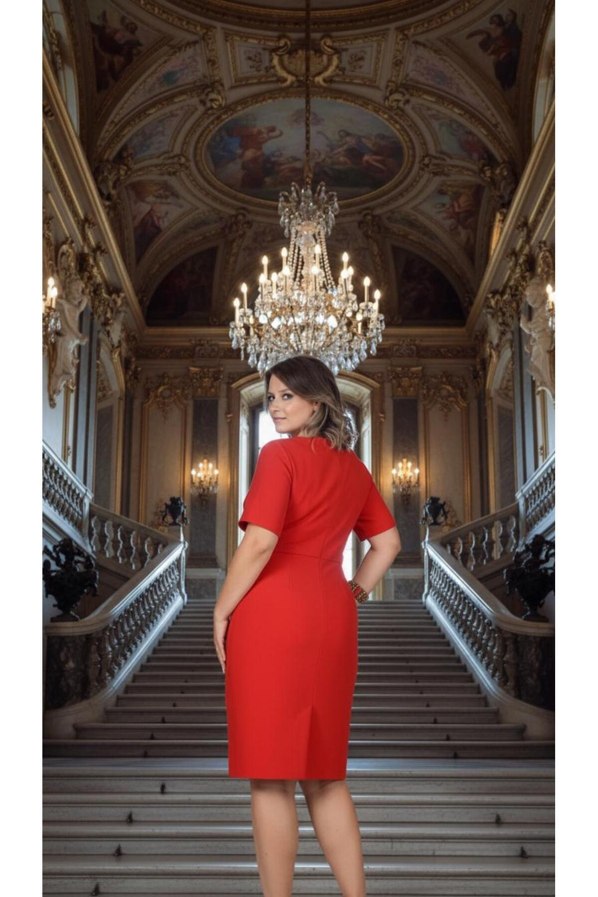 Kadın Kırmızı V Yaka Taşlı Abiye Elbise 4027K Kadın Kırmızı V Yaka Taşlı Abiye Elbise 4027K 54