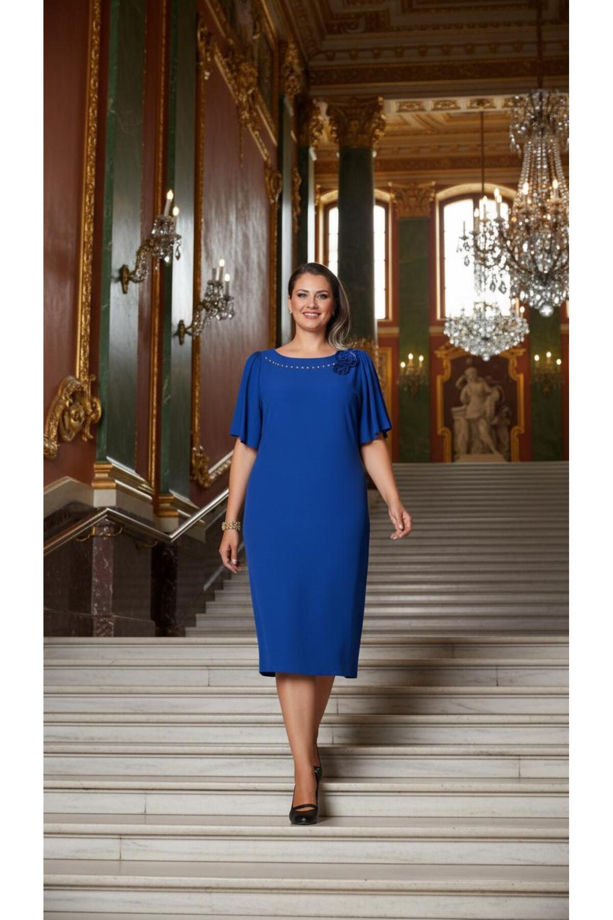 Büyük Beden Taşlı Çiçek Aksesuar Saks Abiye Elbise-4026sx Büyük Beden Taşlı Çiçek Aksesuar Saks Abiye Elbise-4026sx 52