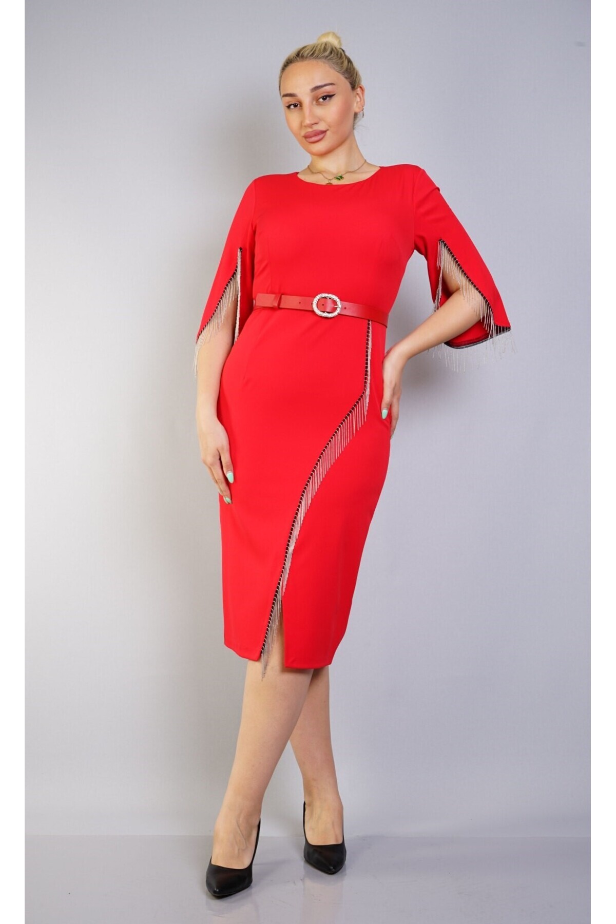 Büyük Beden Taşlı Çiçek Aksesuar Kırmızı Abiye Elbise-4026k Büyük Beden Taşlı Çiçek Aksesuar Kırmızı Abiye Elbise-4026k 52