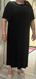Büyük Beden Taşlı Çiçek Aksesuar Siyah Abiye Elbise-4026s Büyük Beden Taşlı Çiçek Aksesuar Siyah Abiye Elbise-4026s 52
