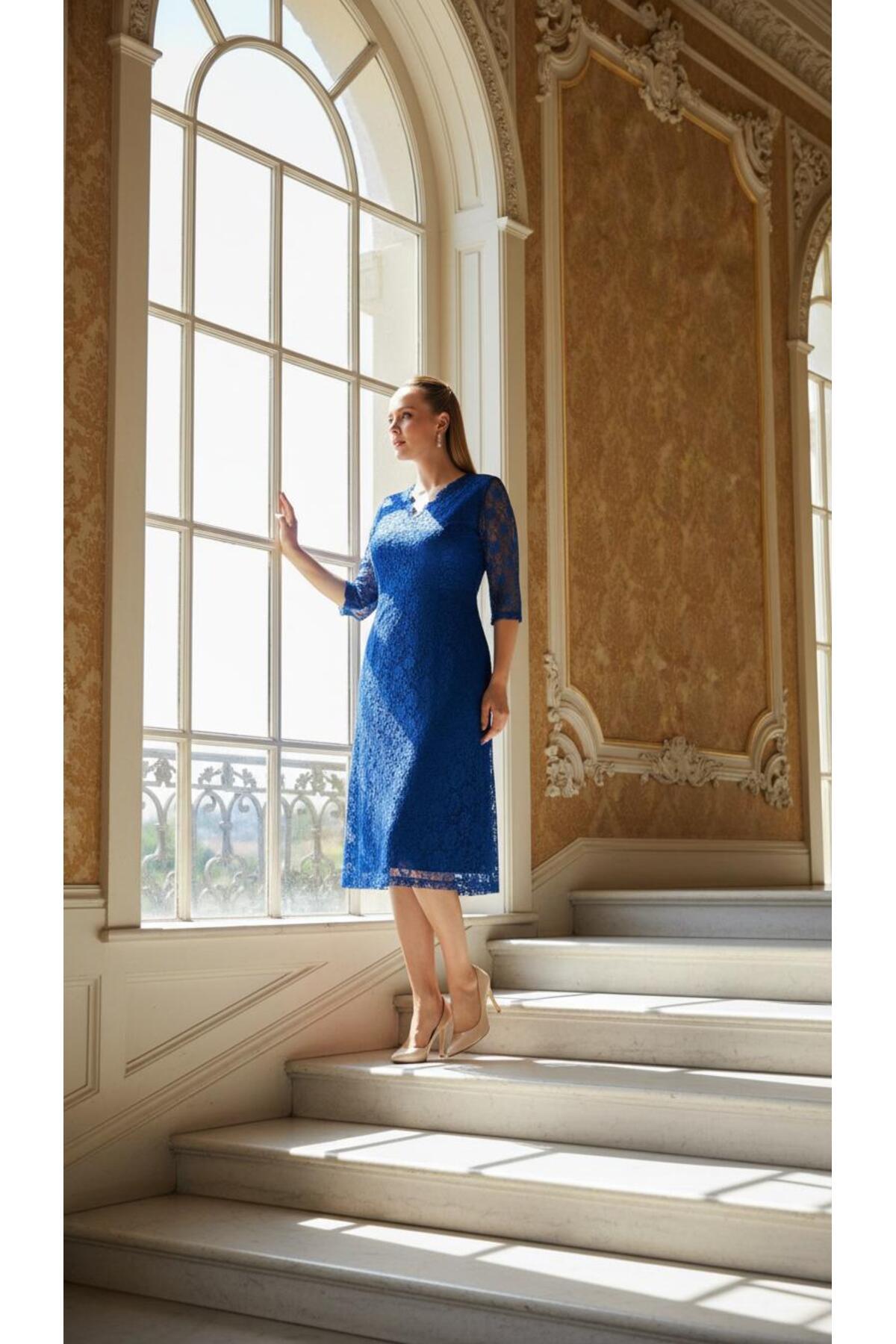 Büyük Beden Kloş Saks Dantel Abiye Elbise-4036sx Büyük Beden Kloş Saks Dantel Abiye Elbise-4036sx 54