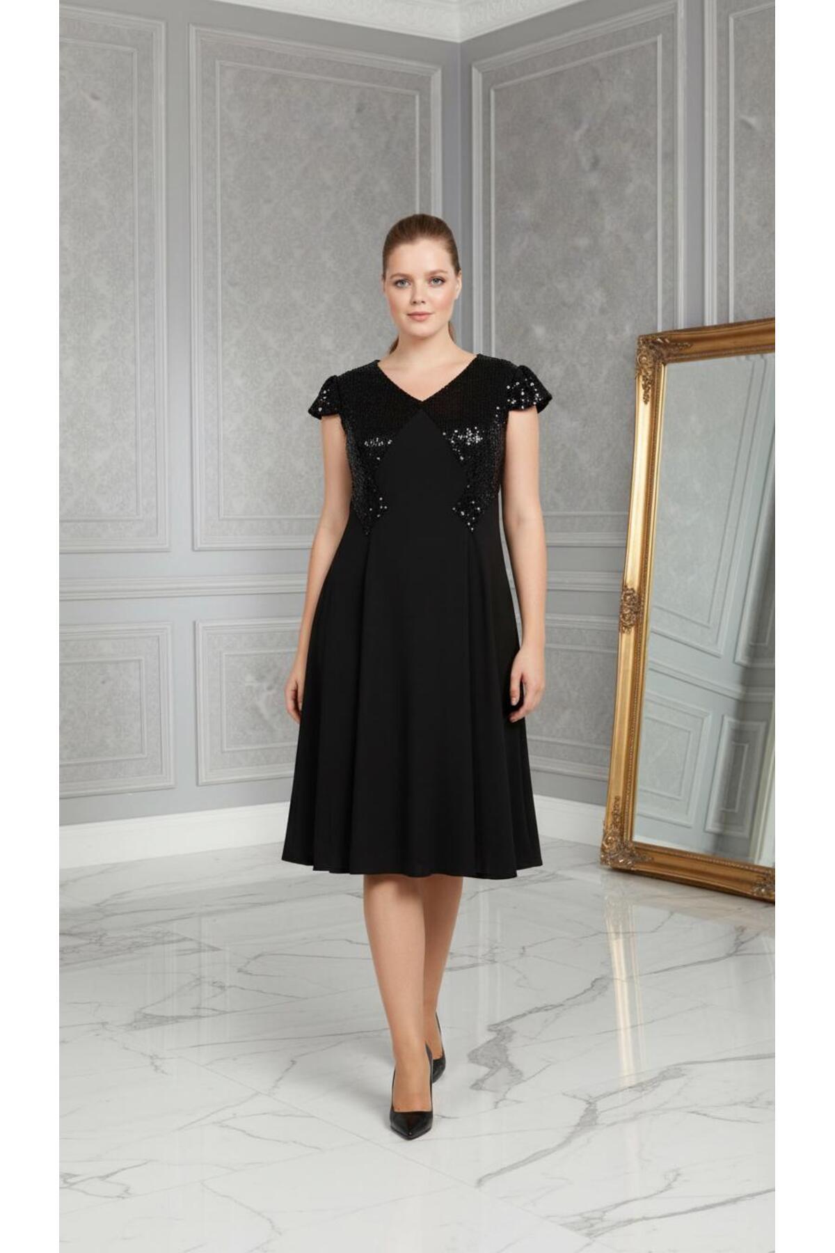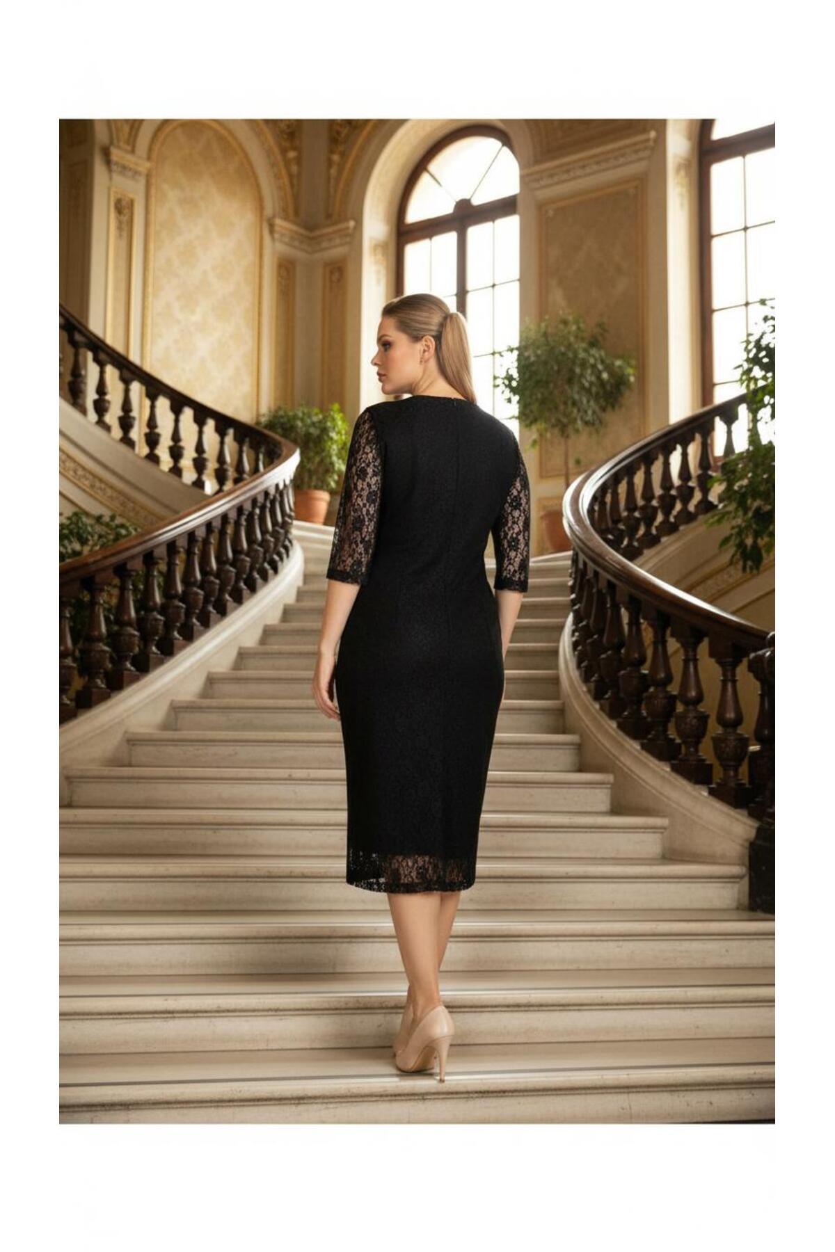 Büyük Beden Siyah Dantel Abiye Elbise-4009dbs Büyük Beden Siyah Dantel Abiye Elbise-4009dbs 4009DB 54